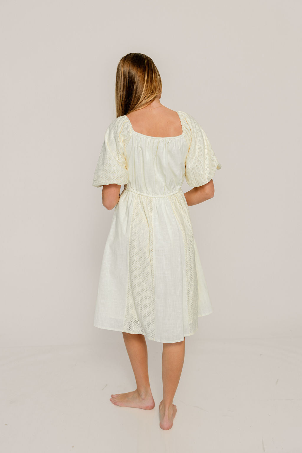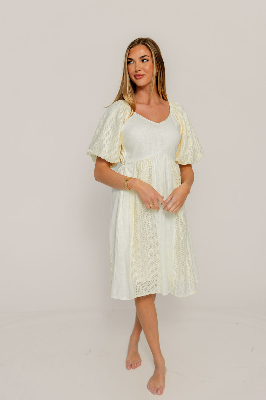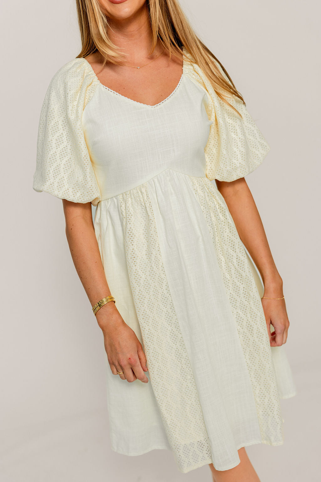 Romy Mixed Media Midi Dress in Light Yellow