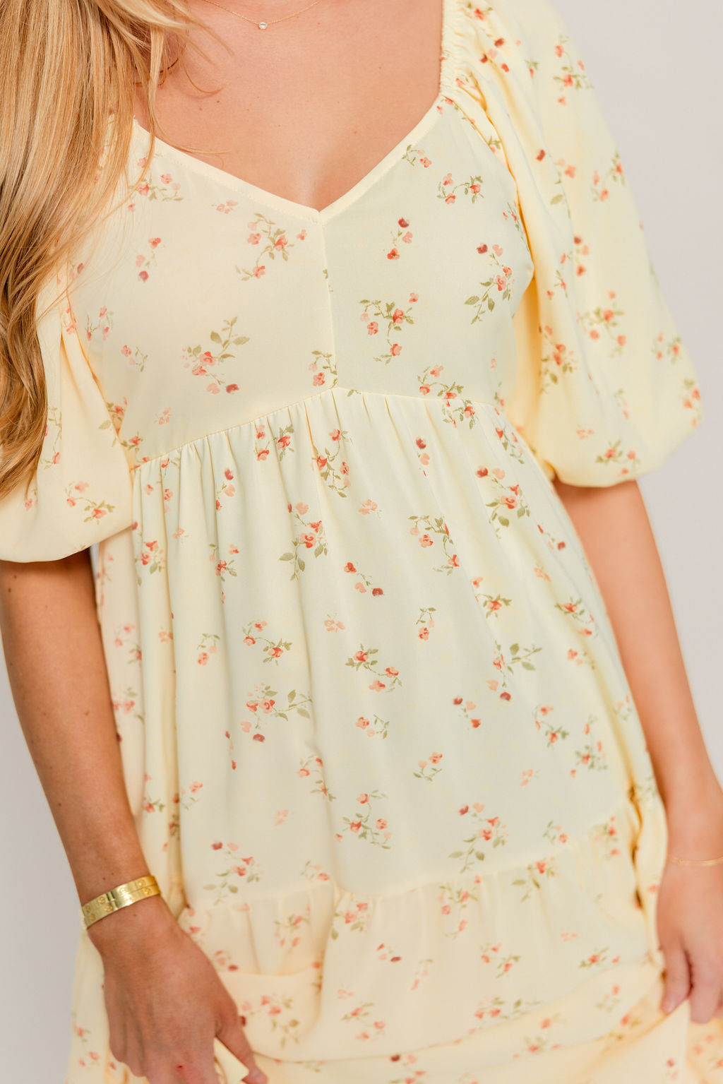 Jules Floral Print Bubble Sleeve Tiered Maxi Dress in Light Yellow