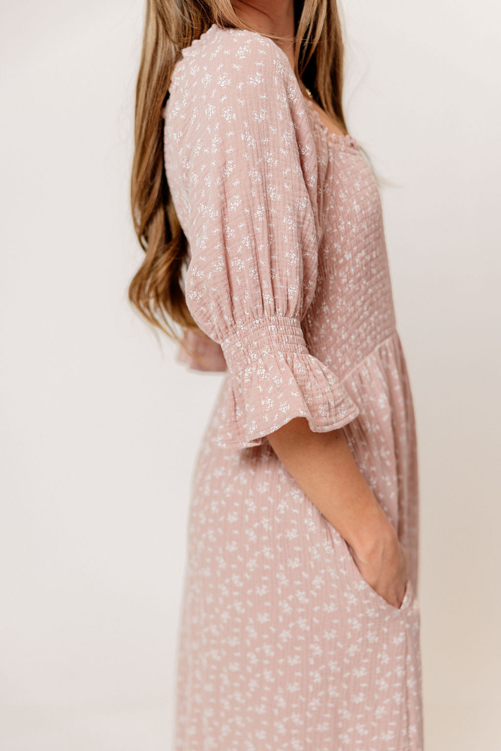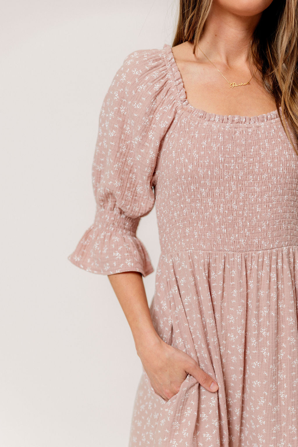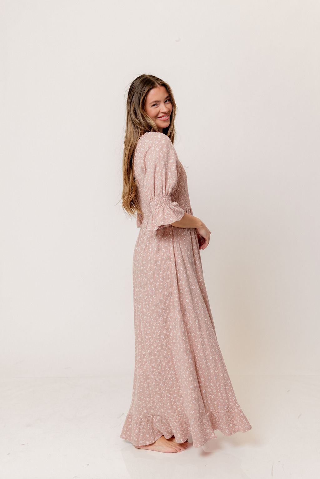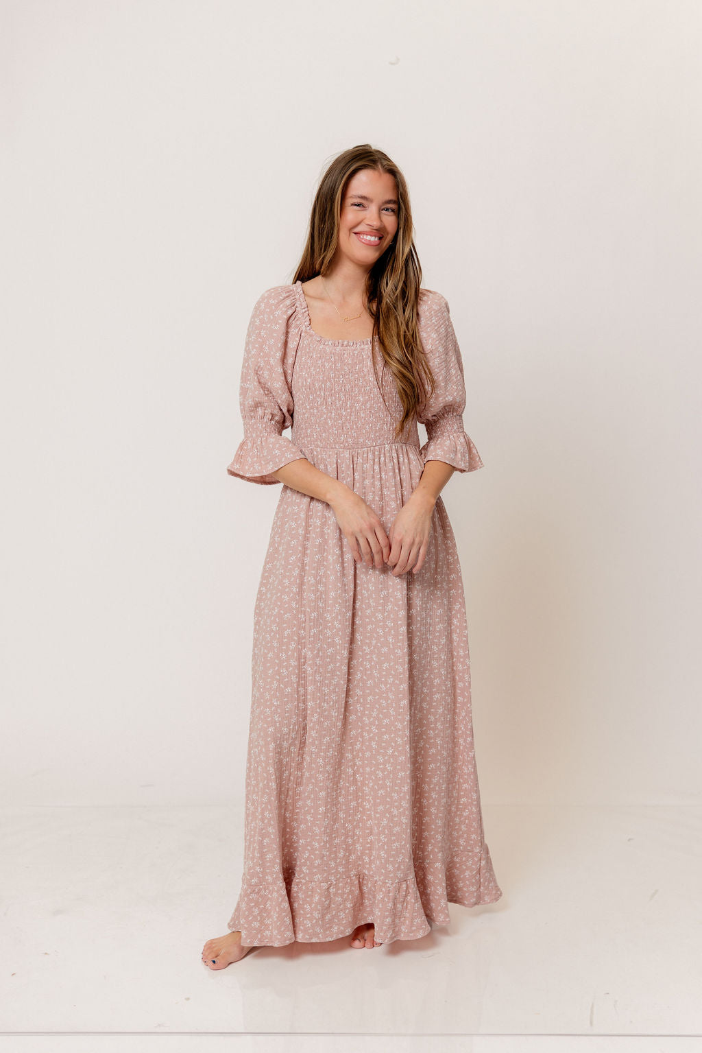 Sienna 100% Cotton Puff Sleeve Maxi Dress in Rose Foliage - Bump Friendly *2/12 PRE-ORDER*