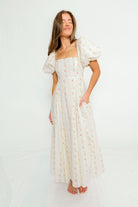 Tate Floral Print Puff Sleeve Maxi Dress in Off-White