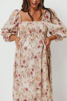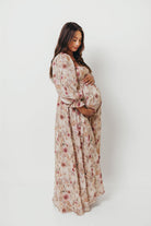 Mona Maxi Dress with Smocking in Pink/Beige Multi Floral - Bump Friendly