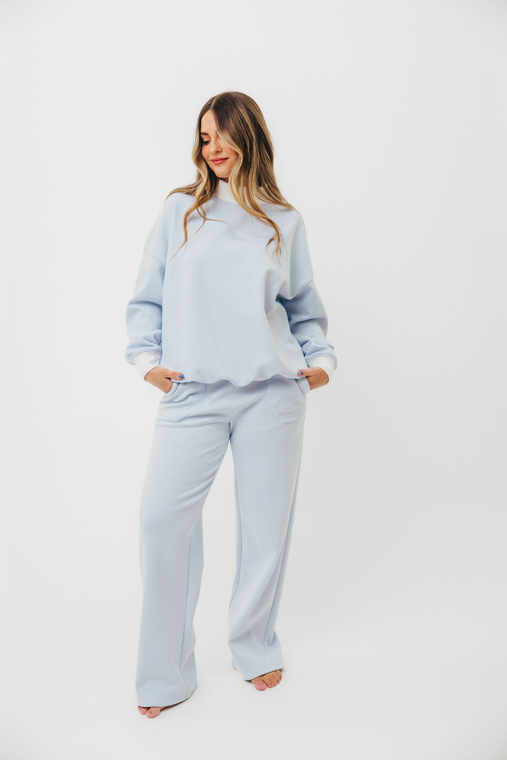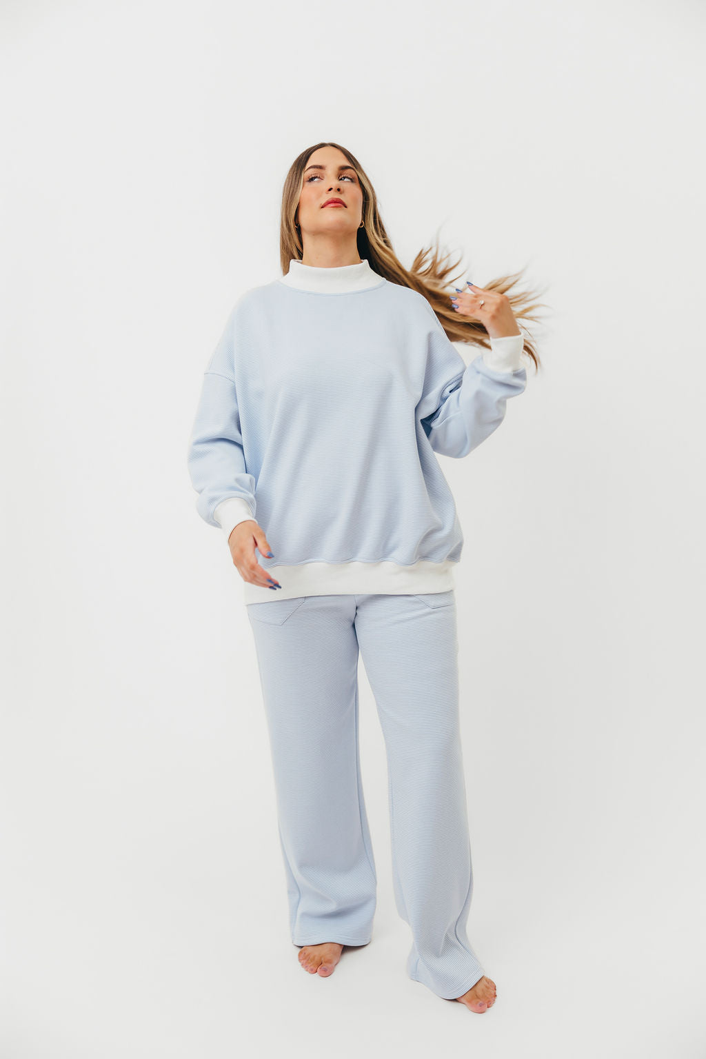 Cynthia Mini Striped Mock Neck Sweatshirt Blue and White