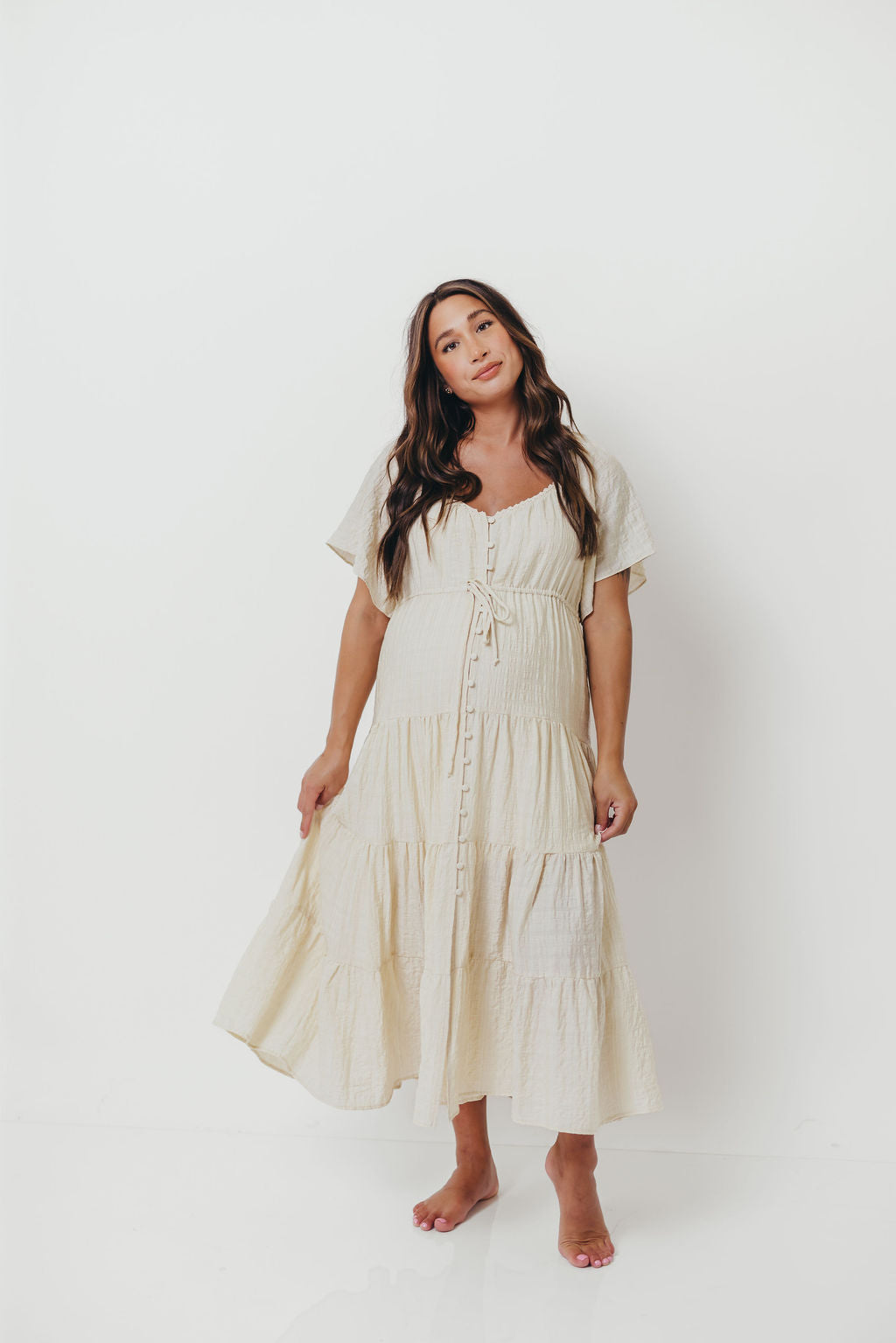 Rumi Woven Sweetheart Maxi Dress in Natural - Bump Friendly - Detachable Liner
