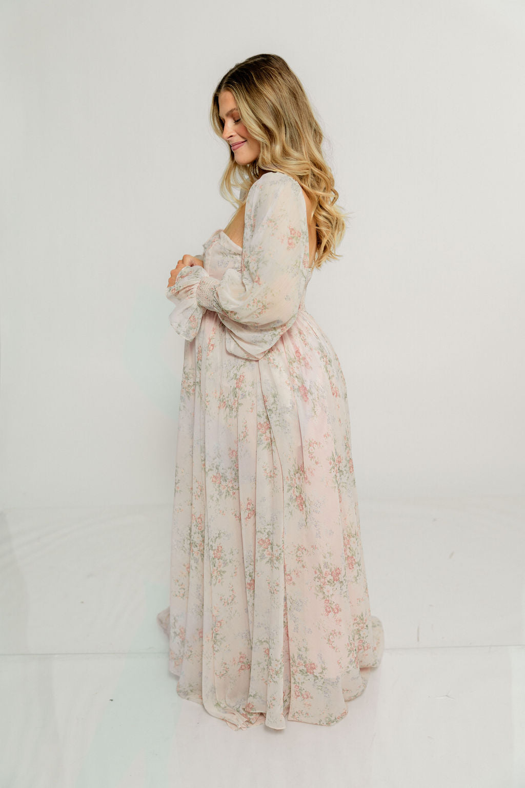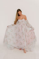 Delilah Maxi Dress with Train in Muted Blush Floral - Bump Friendly *2/5 PRE-ORDER*