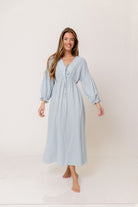 Hunter 100% Cotton Midi Dress in Baby Blue Foliage - Bump Friendly *2/13 PRE-ORDER*