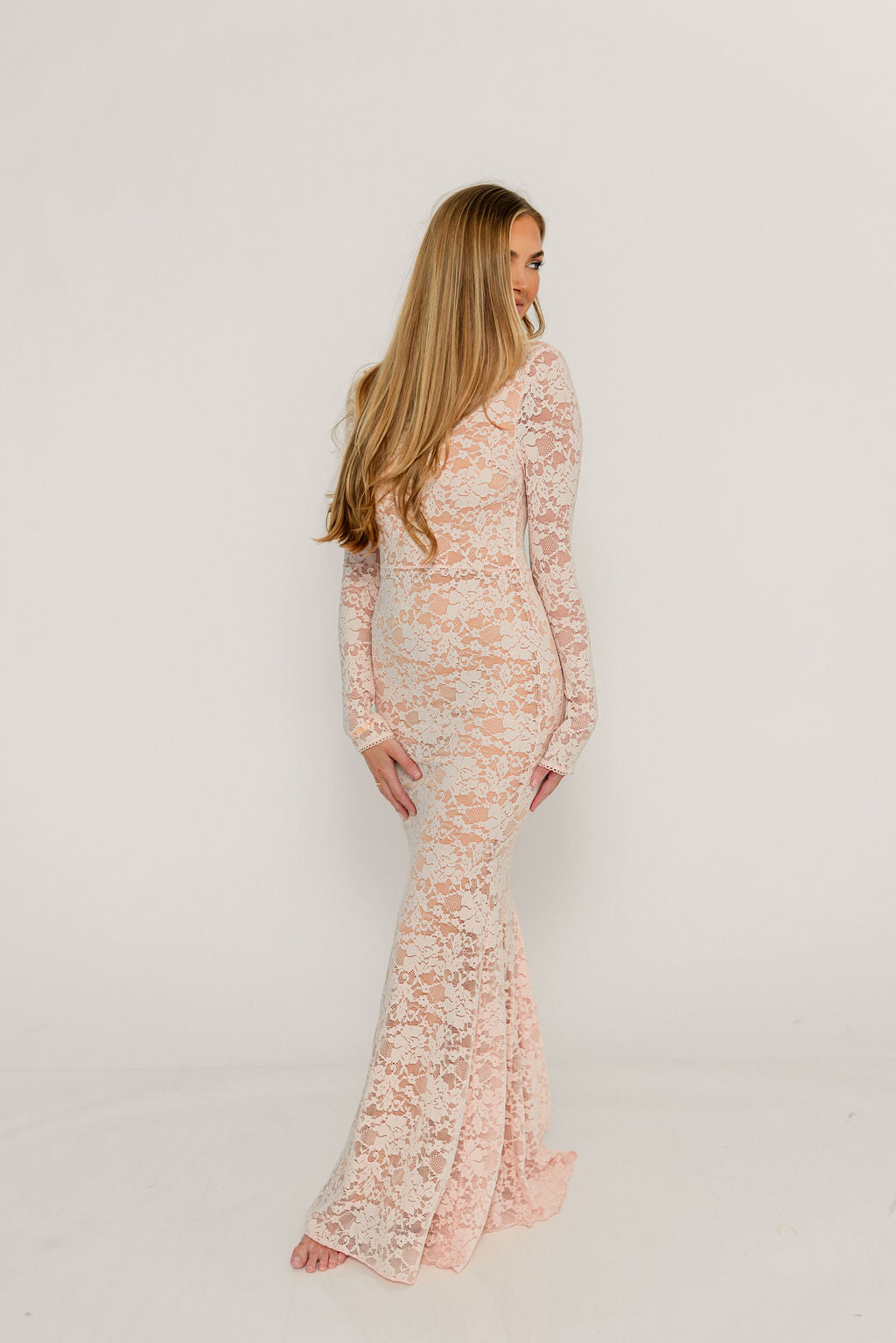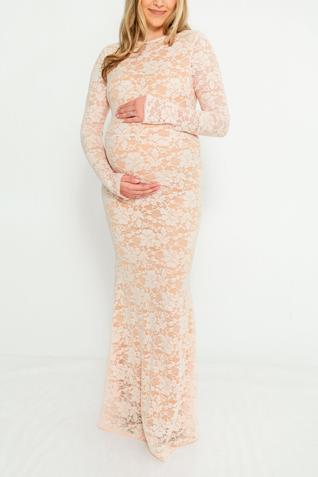 Seraphine Lace Maxi Dress in Pale Pink - Bump Friendly (Size Up for Bump) *2/16 PRE-ORDER*
