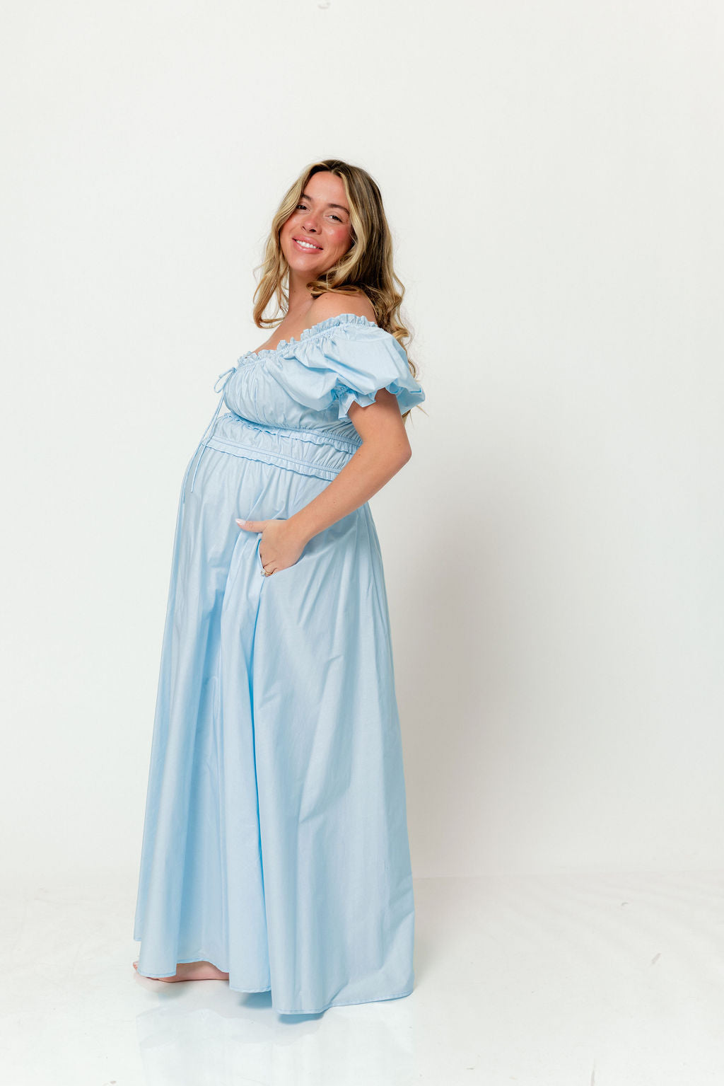 Sydnee Cotton Maxi Dress in Light Blue - Bump Friendly