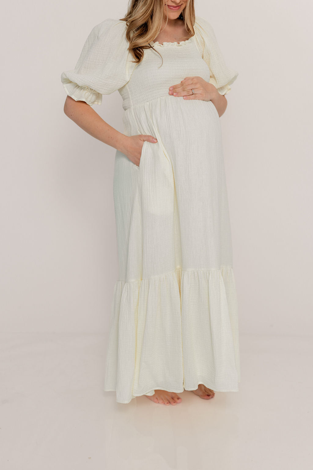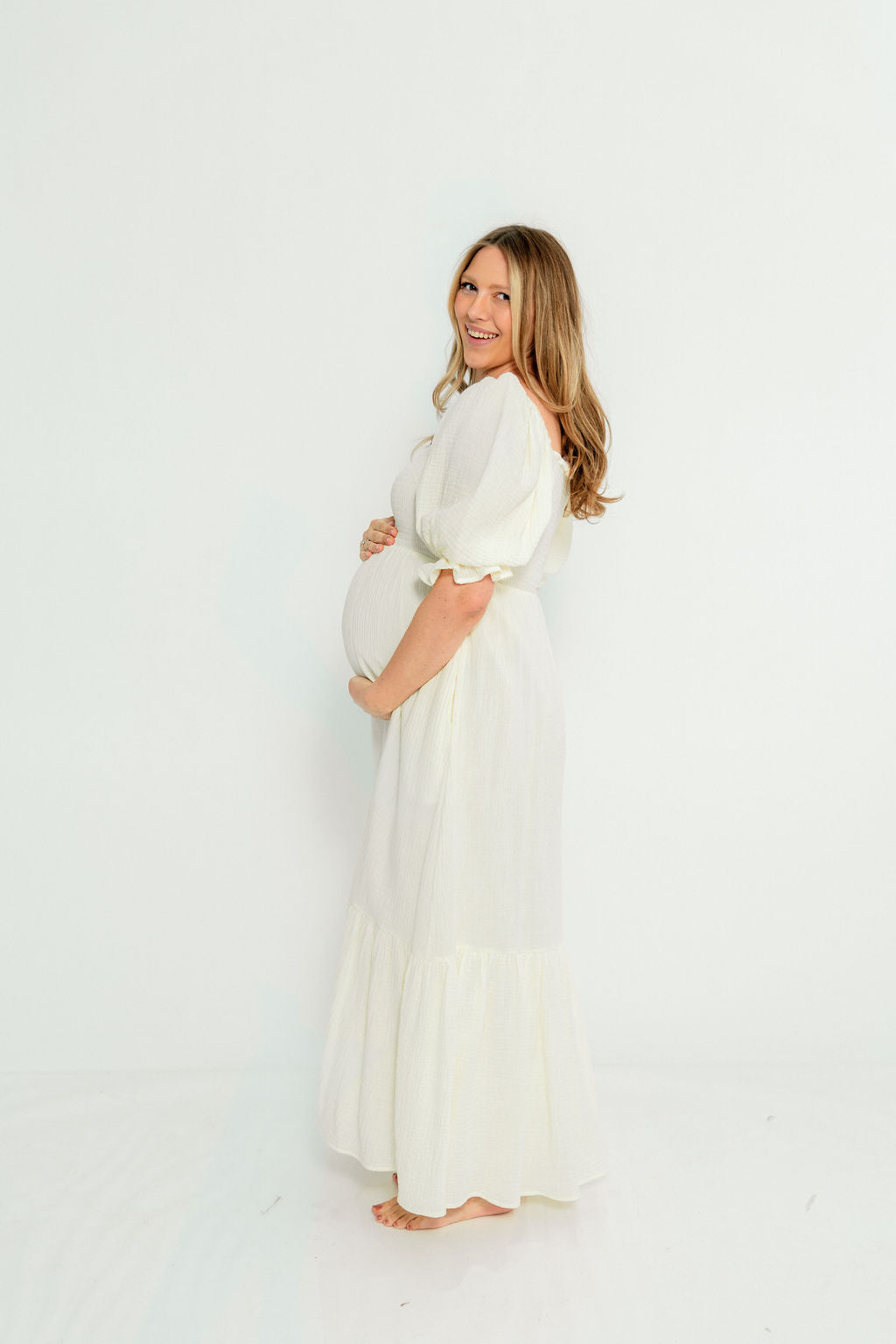 Modest Liv 100% Cotton Maxi Dress in Cream - Bump Friendly