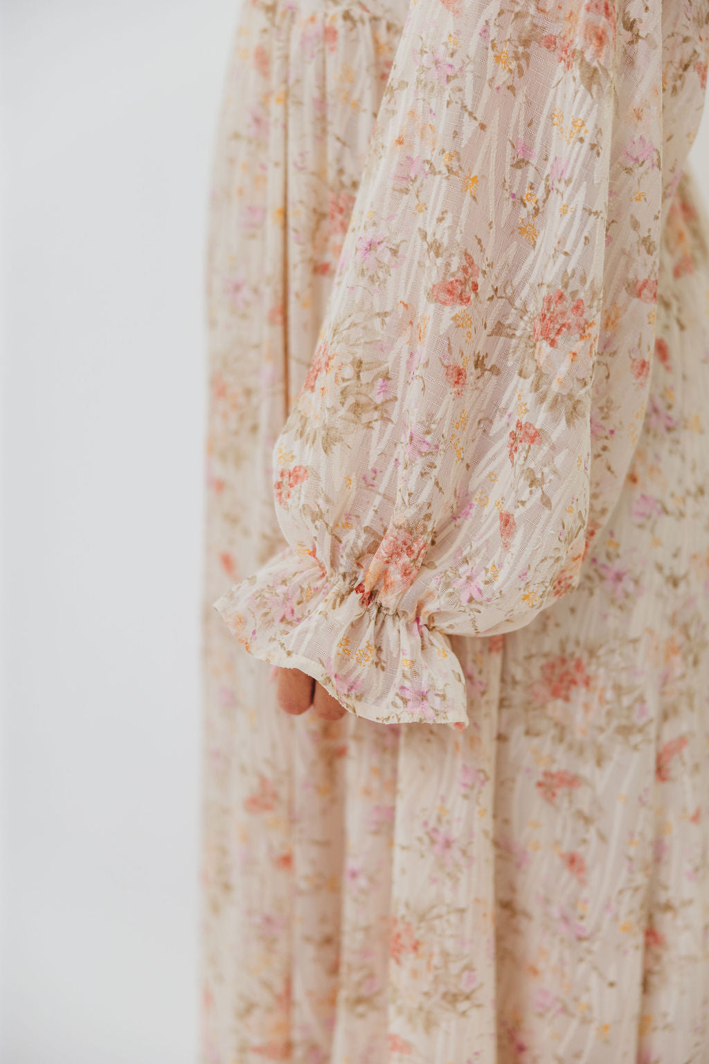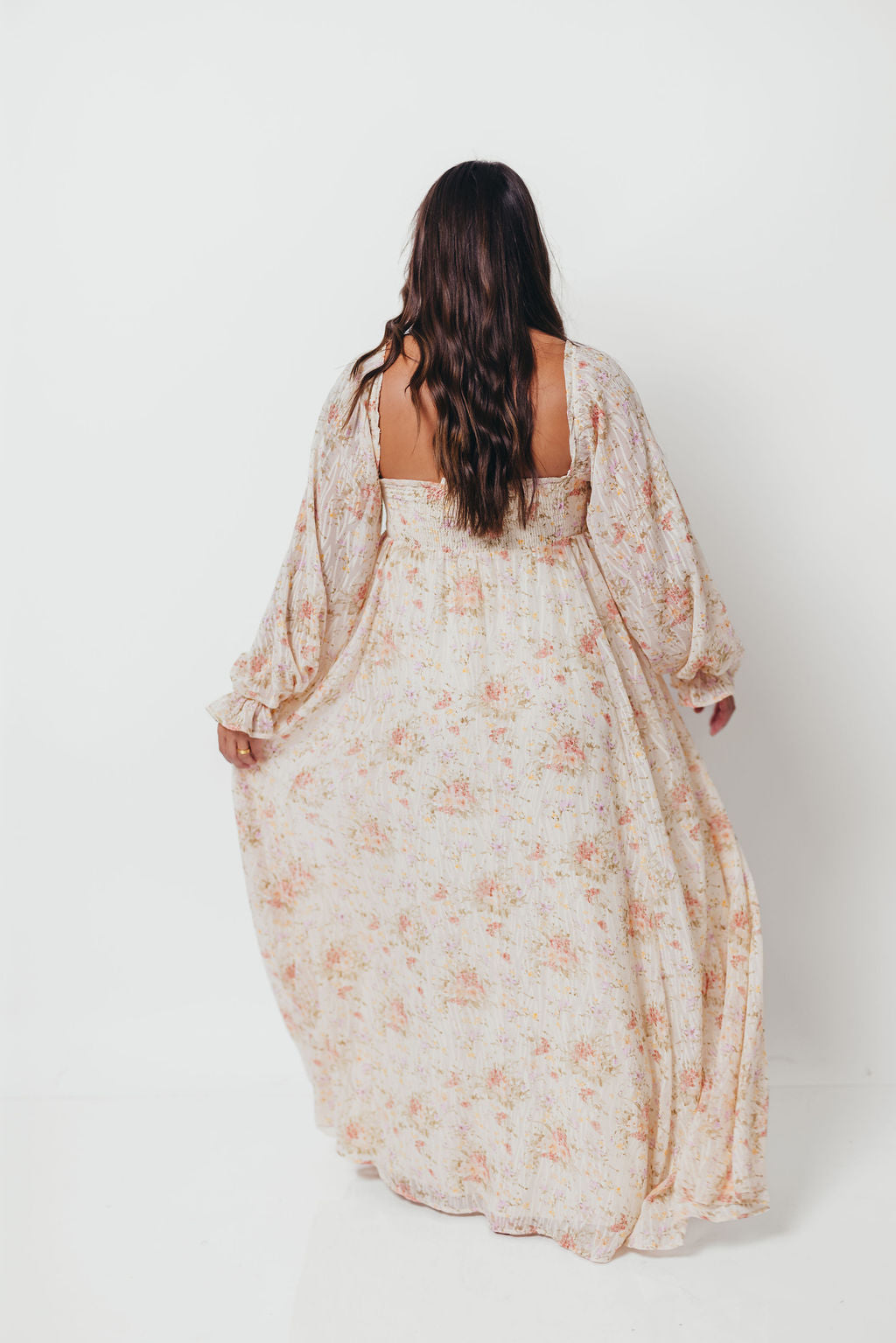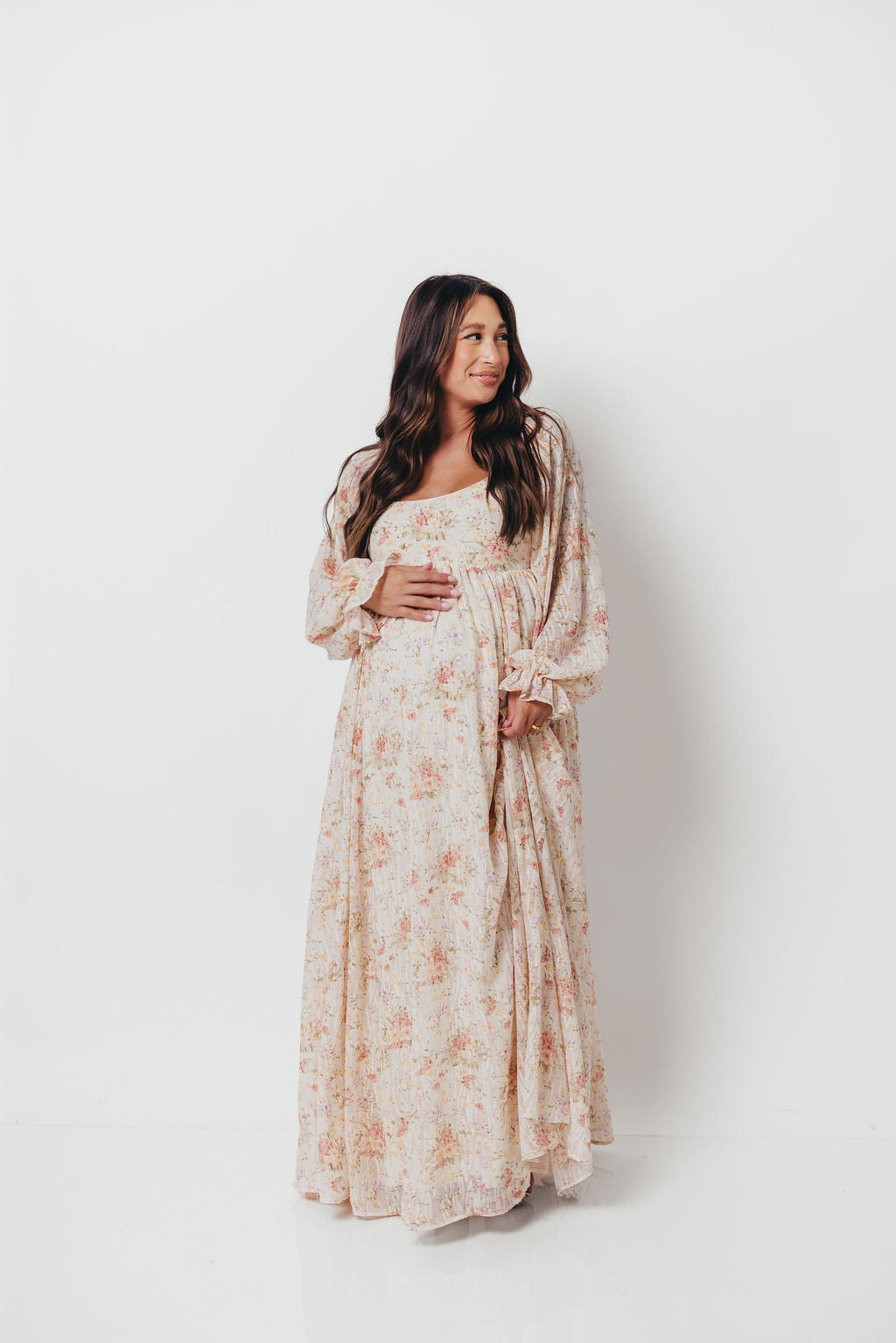 Rosey Woven Floral Print Empire Maxi Dress in Cream Multi - Bump Friendly