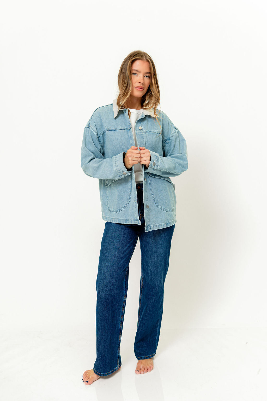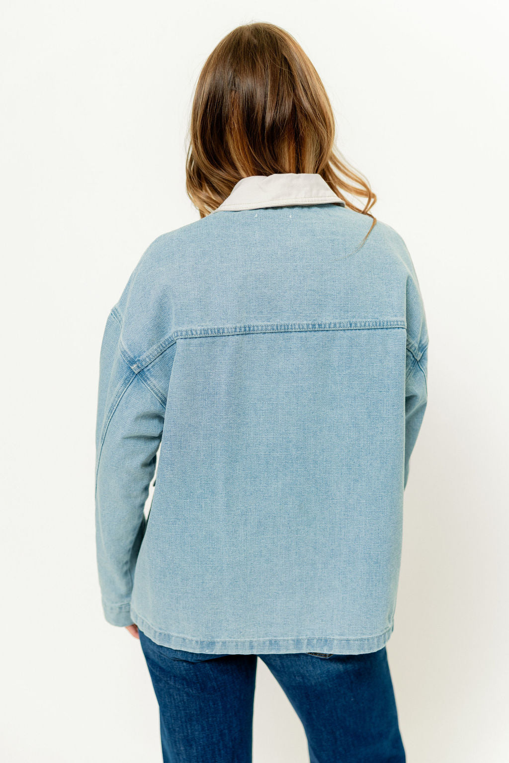 Jones Contrast Collar Light Wash Denim Jacket in Light Denim