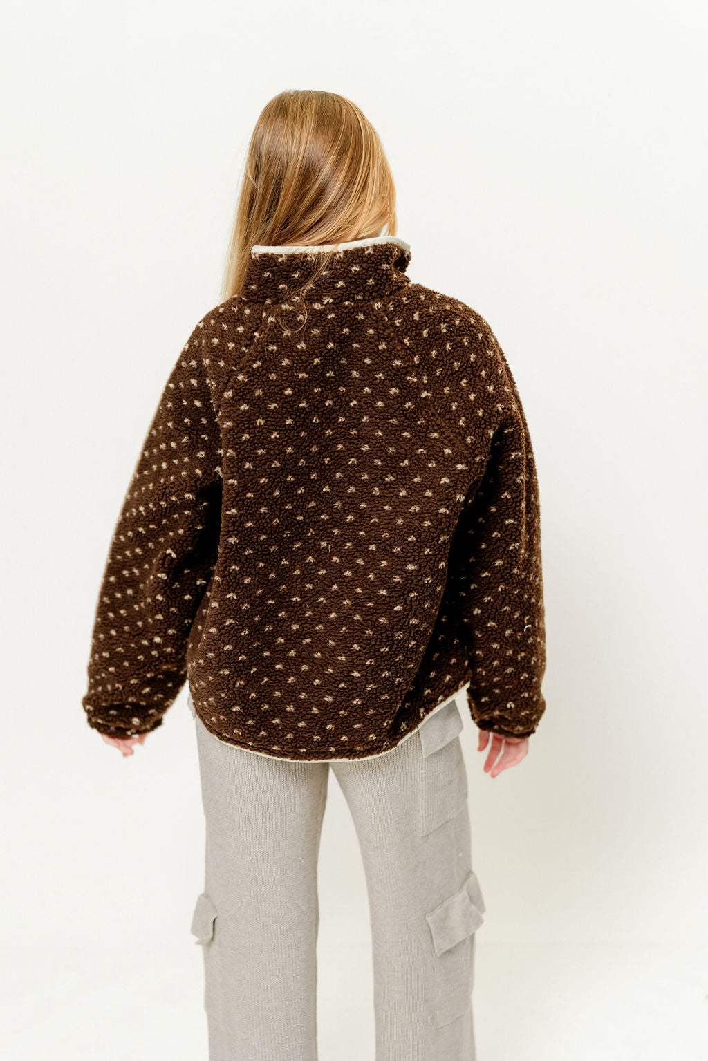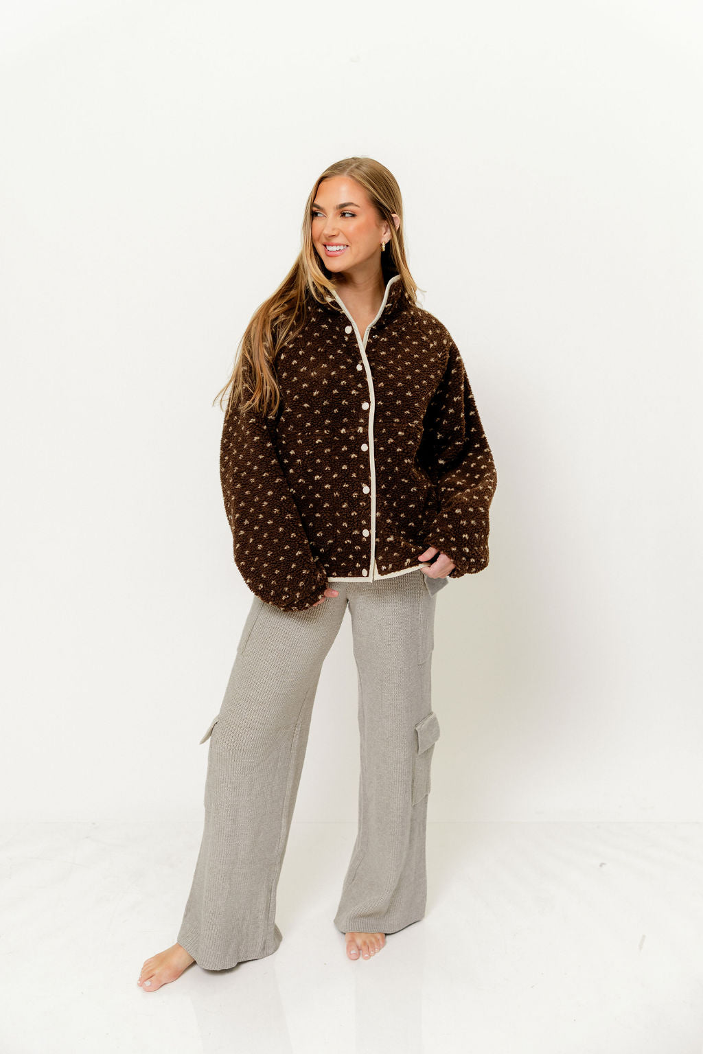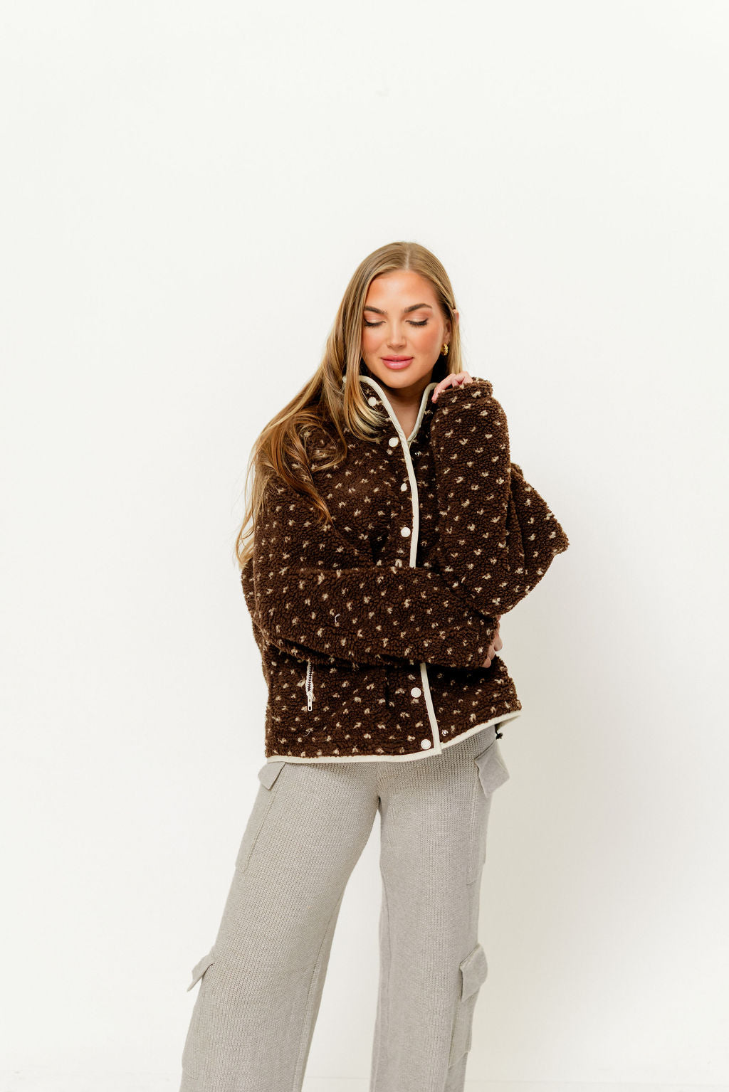 Kade Button Up Fleece Jacket in Brown/Taupe