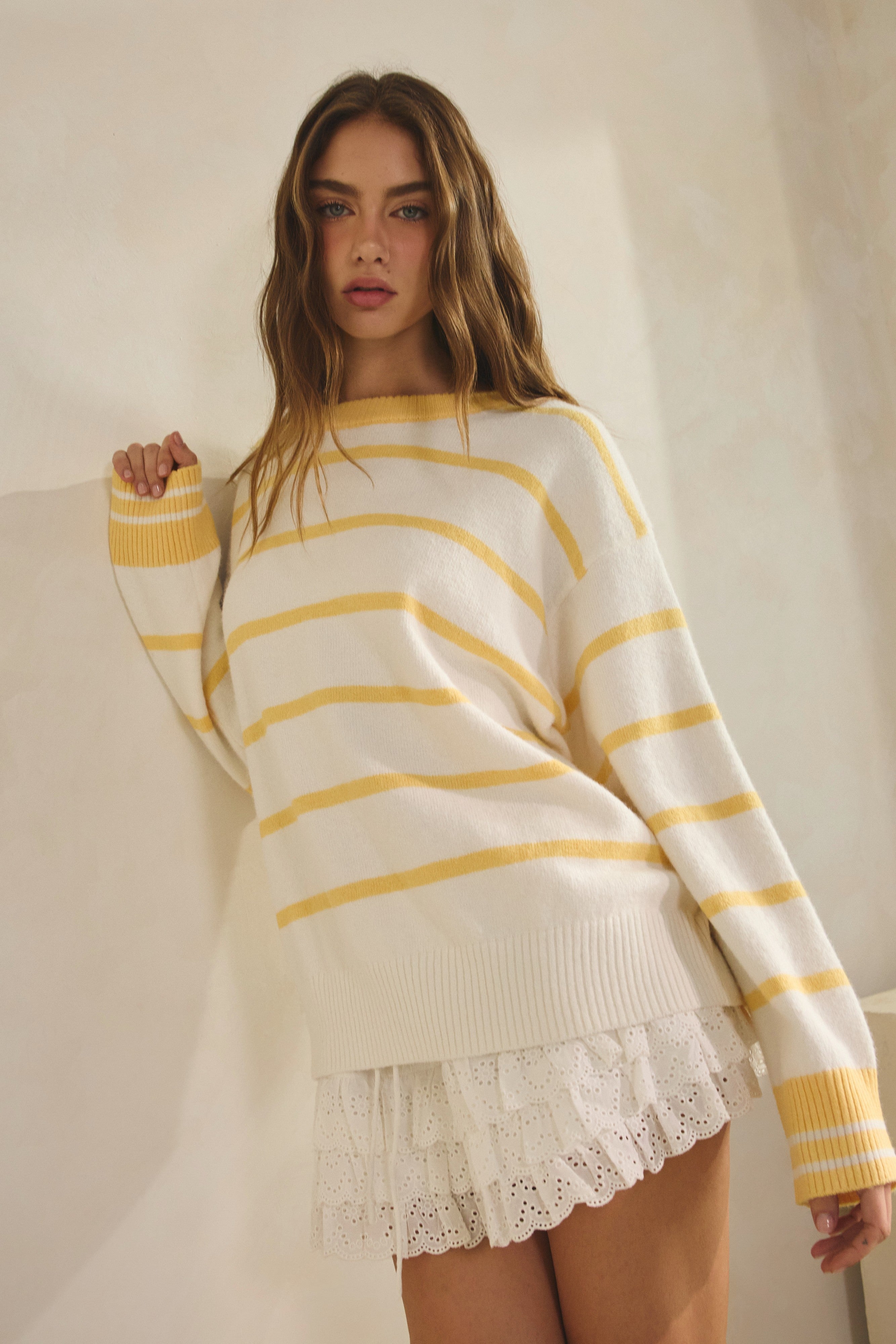 Amelie Oversized Striped Knit Sweater in Navy/White