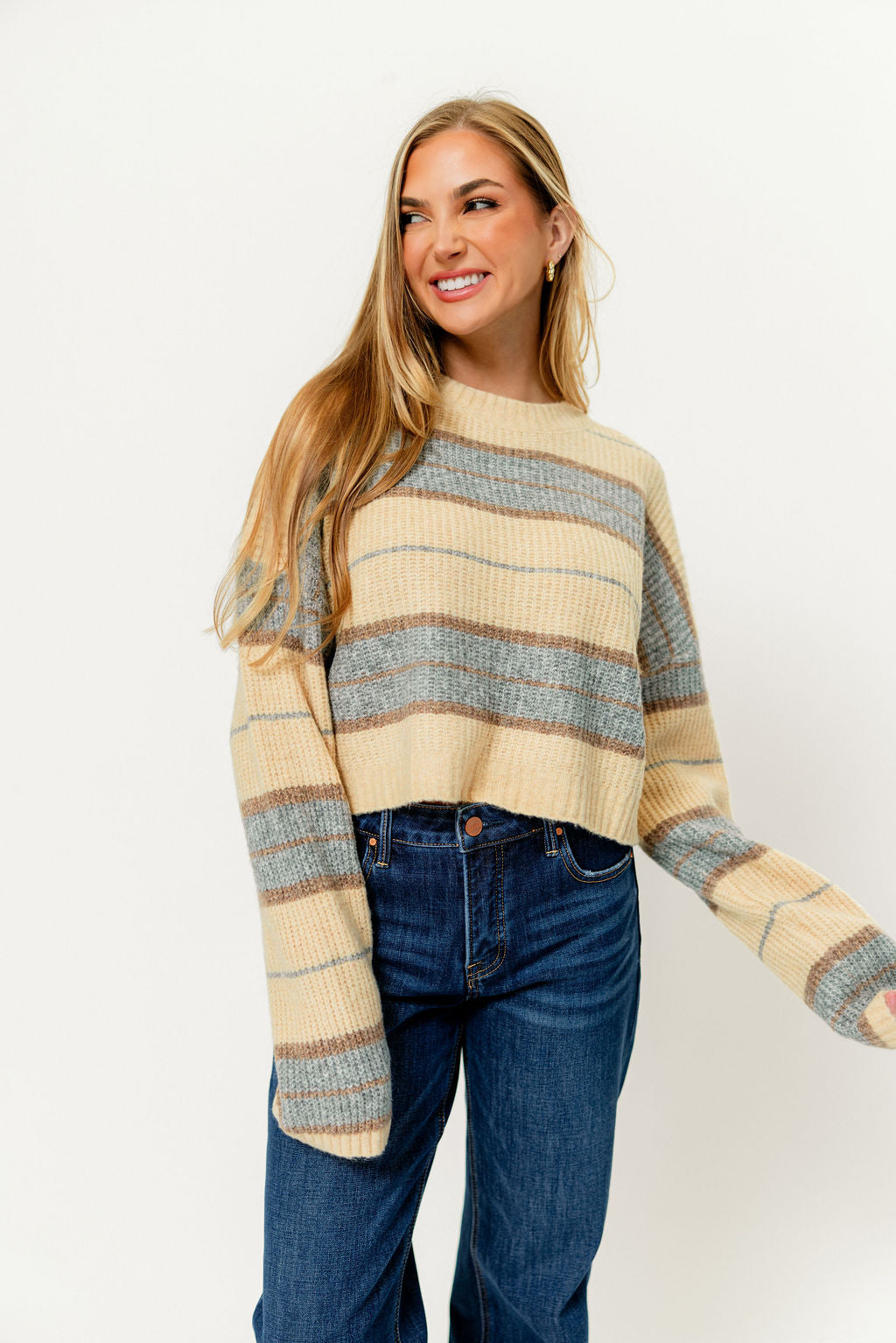 Pat Cropped Sweater in Butter/Heather Grey Stripe *Final Sale*