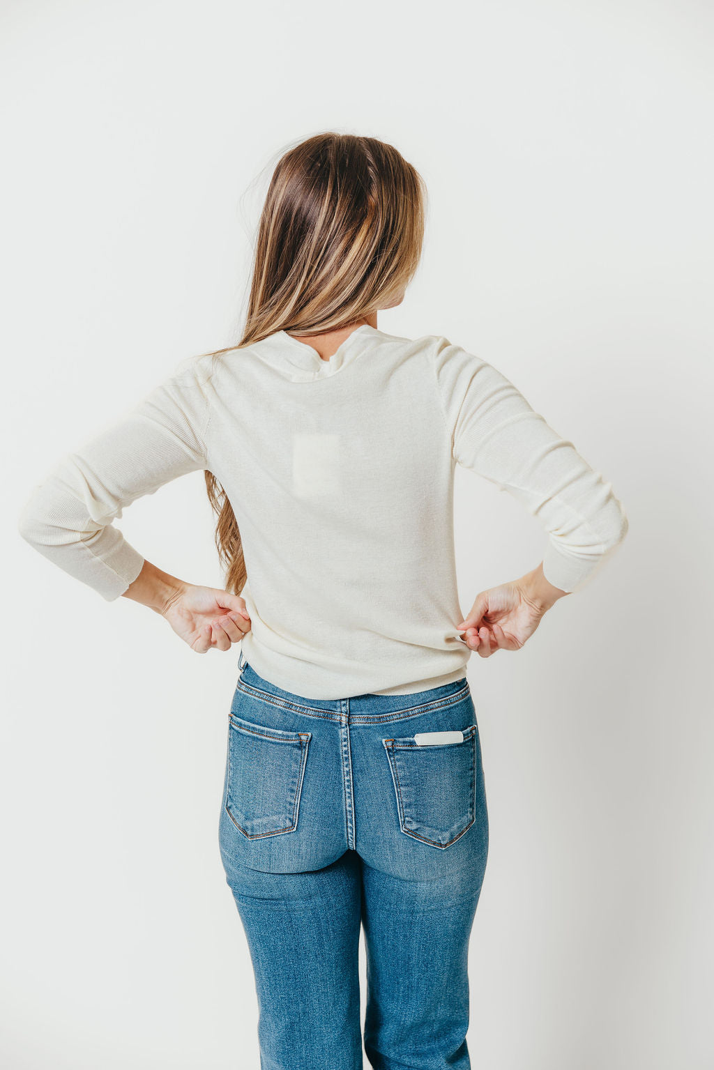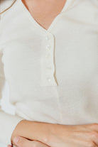 Whittier V-Neck Button Closure Knit Top in Ivory