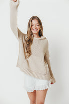 Priscilla Knit Sweater Hoodie in Oatmeal