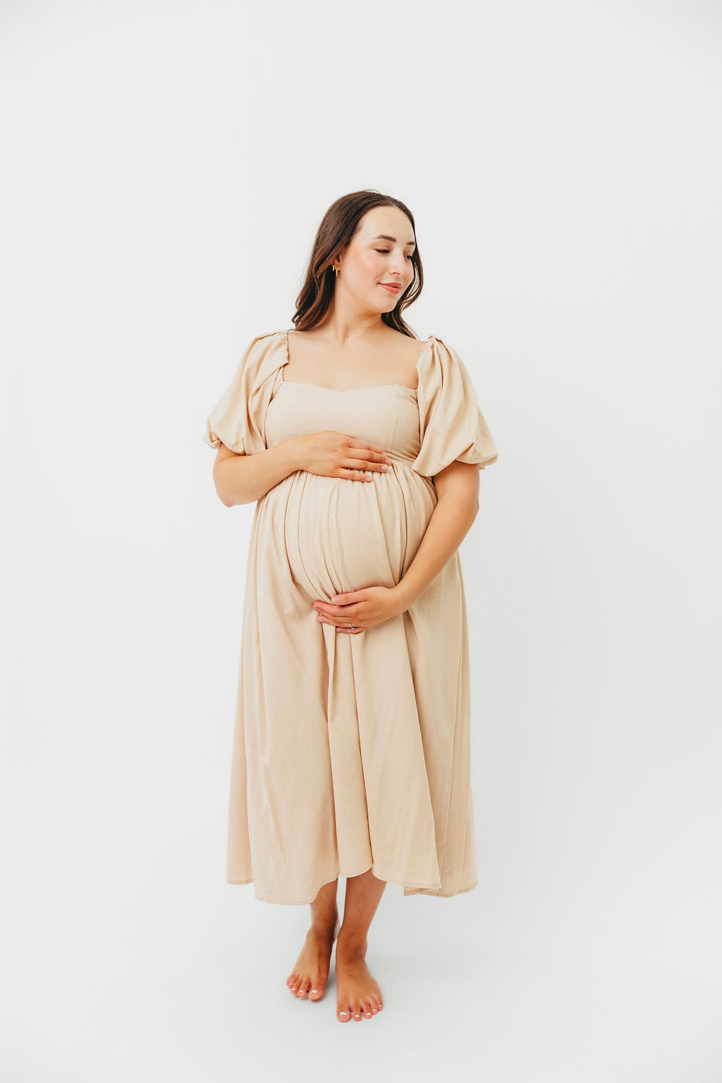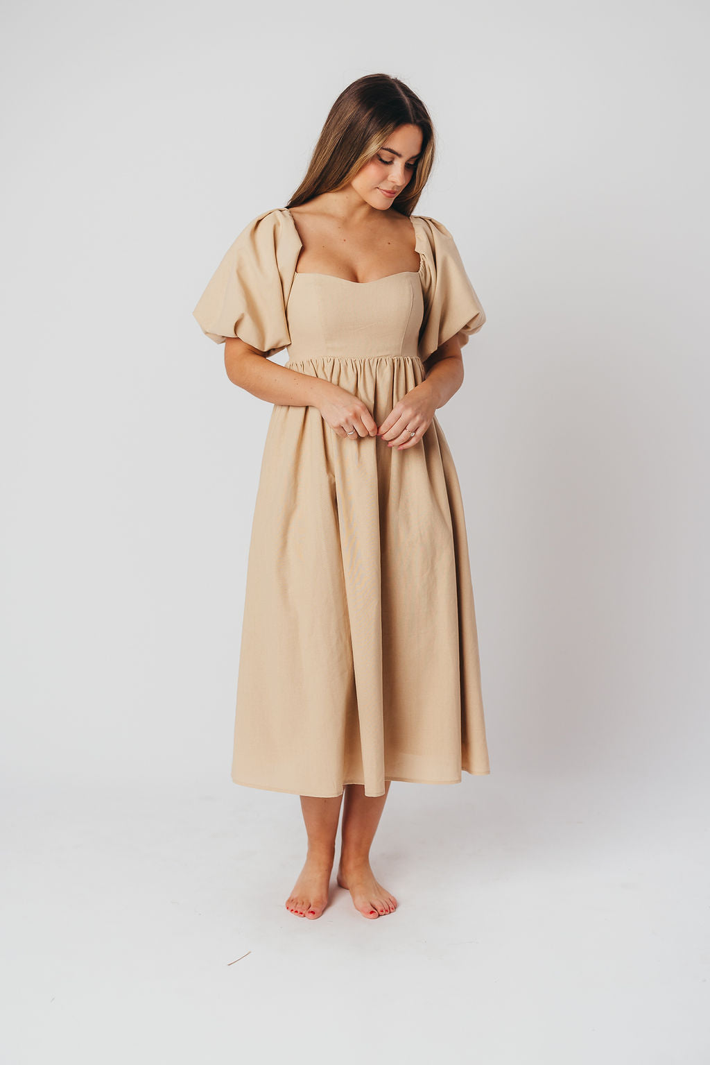 Hamilton Midi Dress in Taupe - Bump Friendly (S-2XL) *Final-Sale*