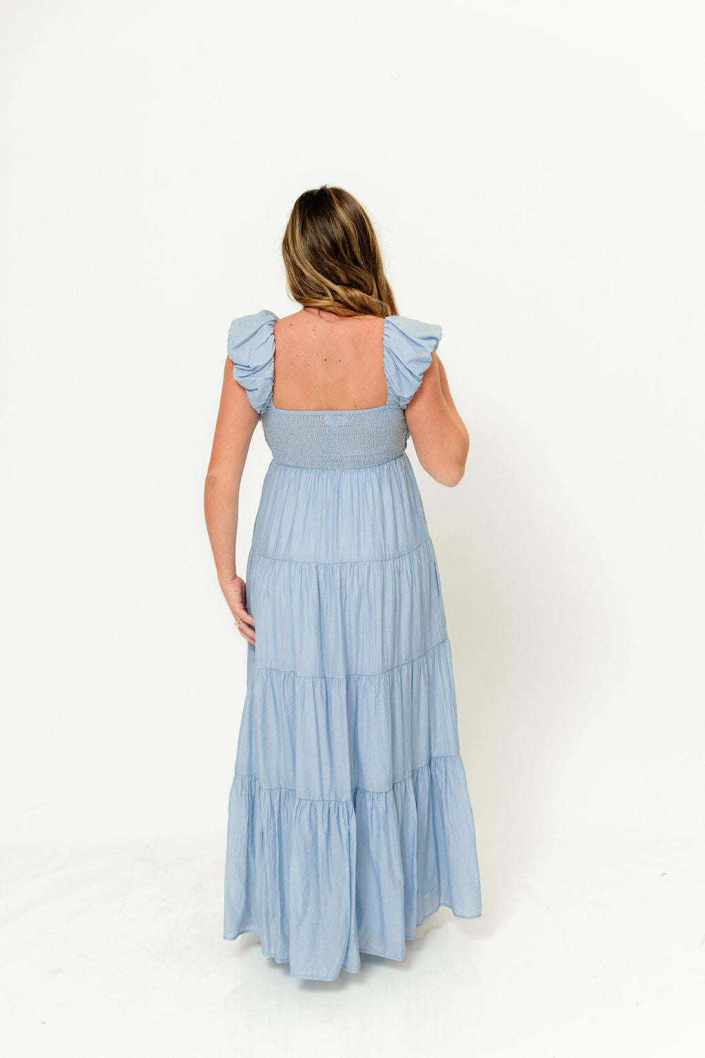 The Katy Maxi has so many gorgeous details, it's easy to see why this is one of Worth Collective's new favorite dresses. Pictures don't do this beauty justice - from its pleated empire-waist bodice, to its ruffled cap sleeves and ultra-feminine tiered skirt, this dress speaks wildflowers and walks on the beach. Pair with neutral sandals for charming elegance.