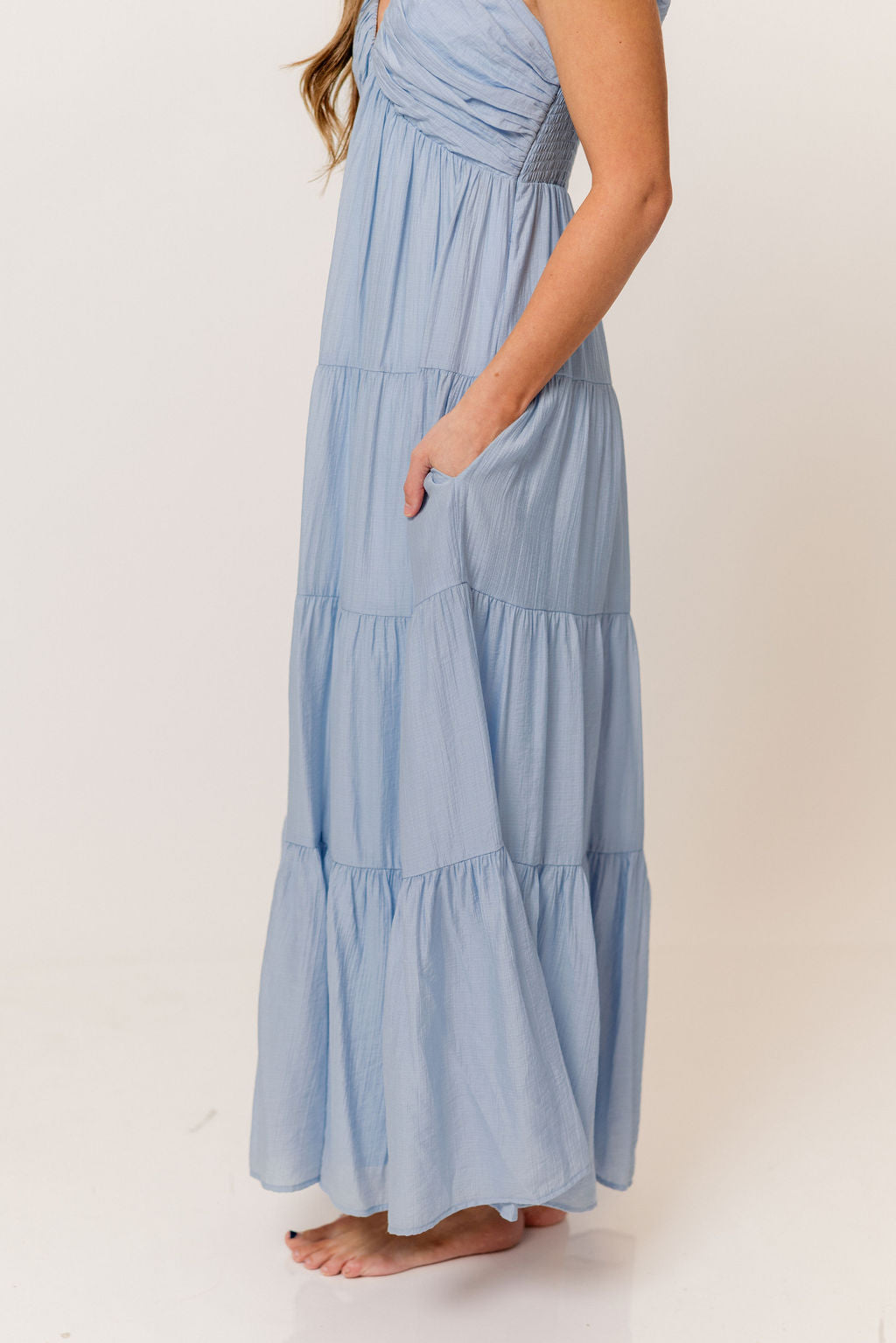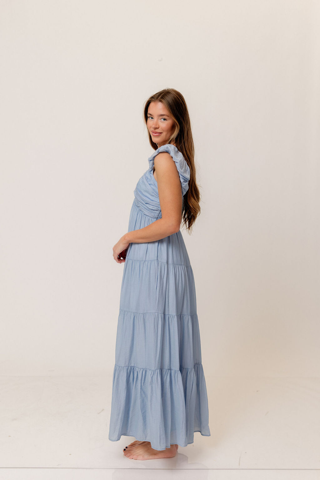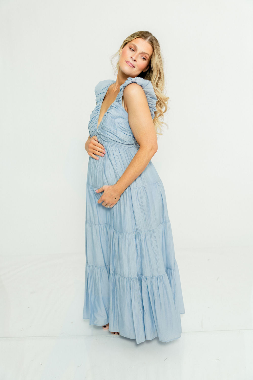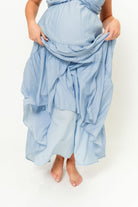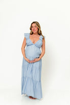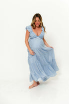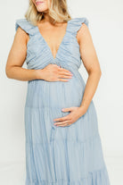 Katy Pleated Bodice Maxi Dress in Dusty Blue - Bump Friendly