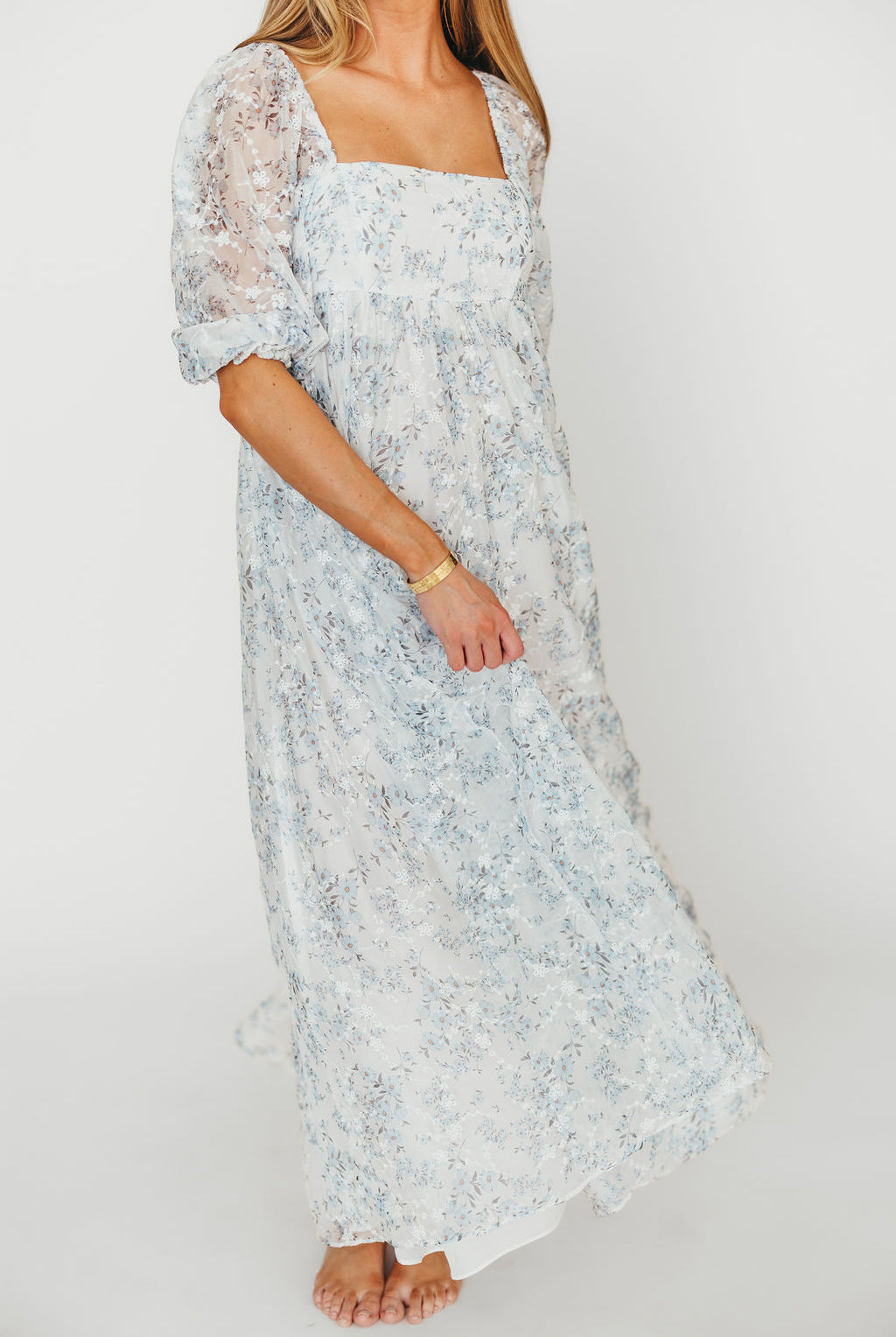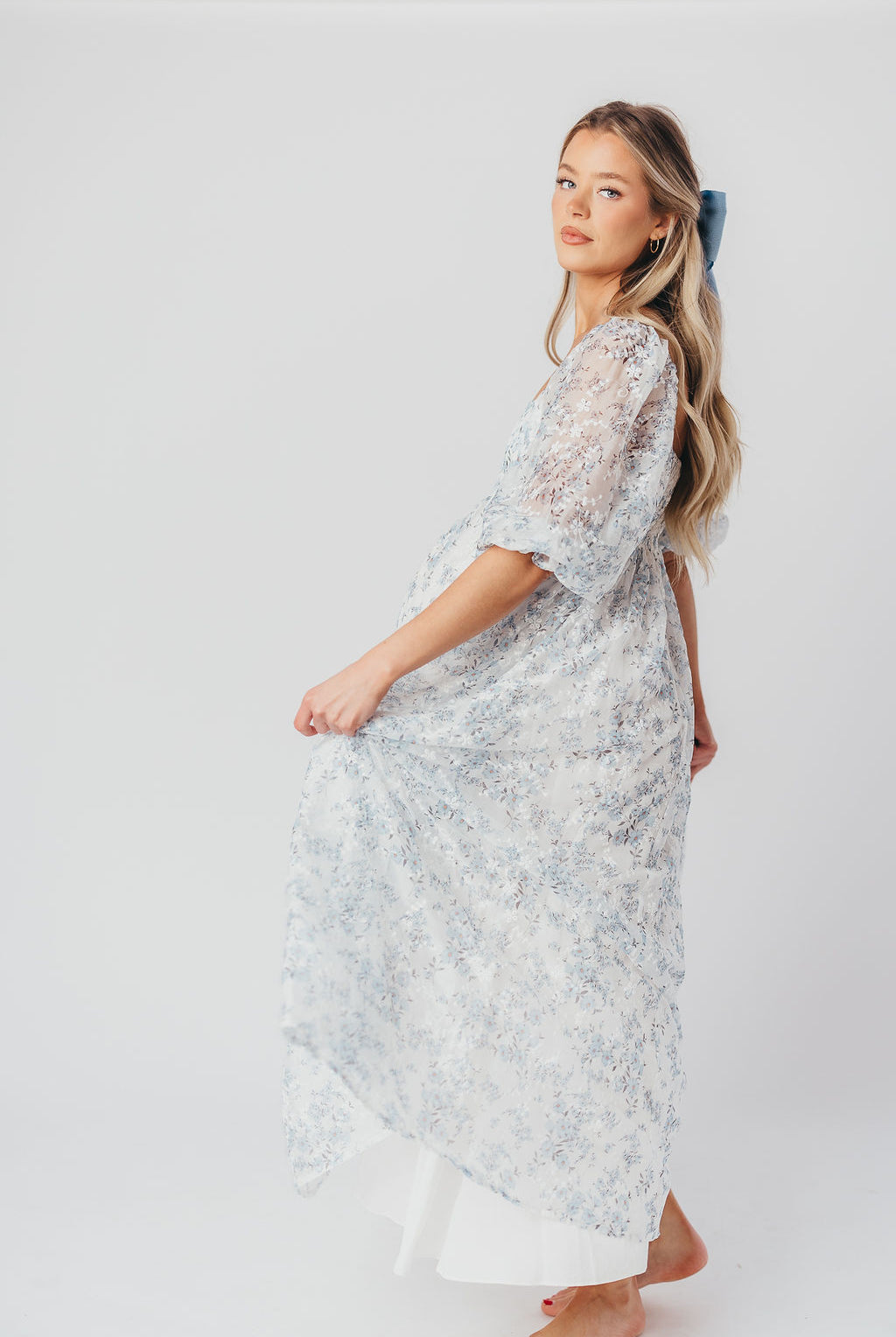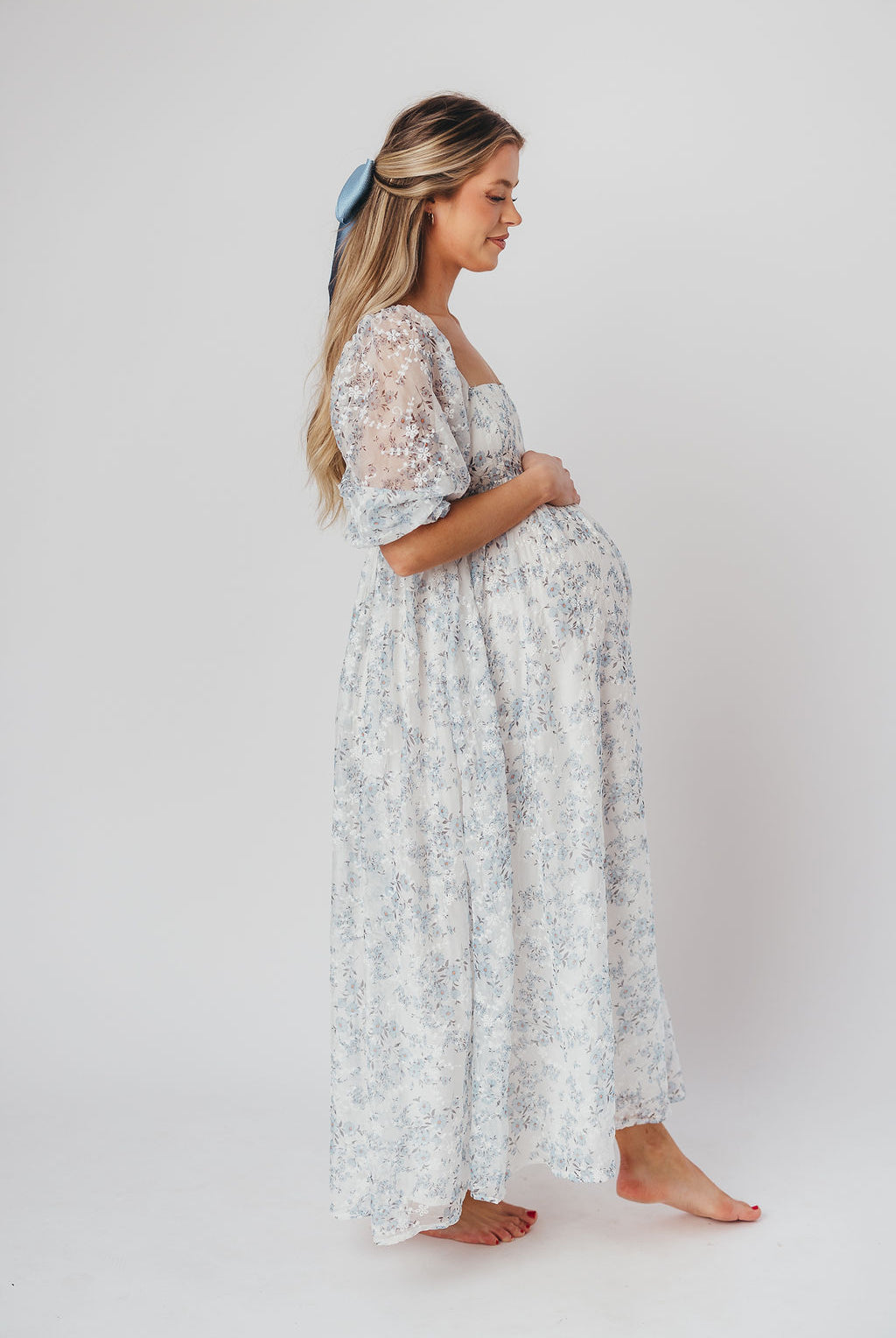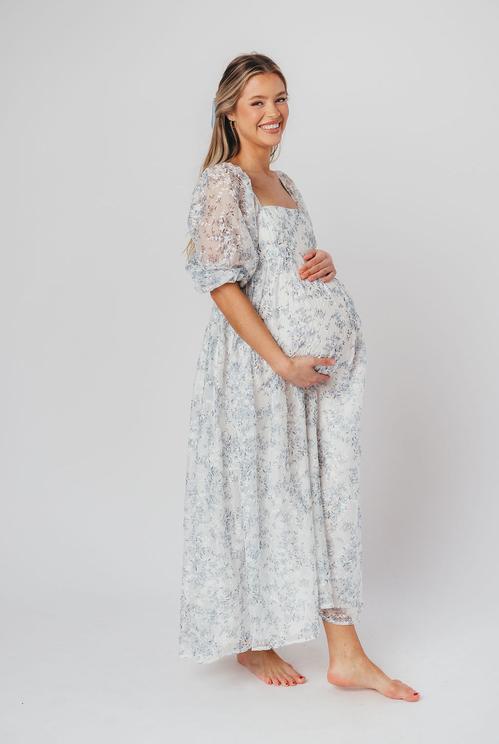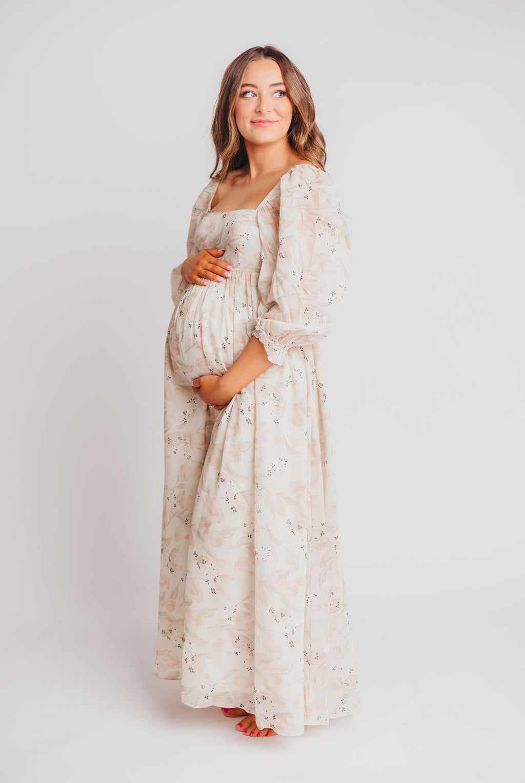 This dreamy maxi dress is pure romance; you'll practically float away in a stunning, gauzy cloud! Featuring a flattering square neckline and empire waist, it's giving elegant Bridgerton while staying fresh and charming. The Mona is a favorite with our expecting mamas, and is a perfect choice for maternity shoots or a special event brunch. Enjoy feeling like royalty!