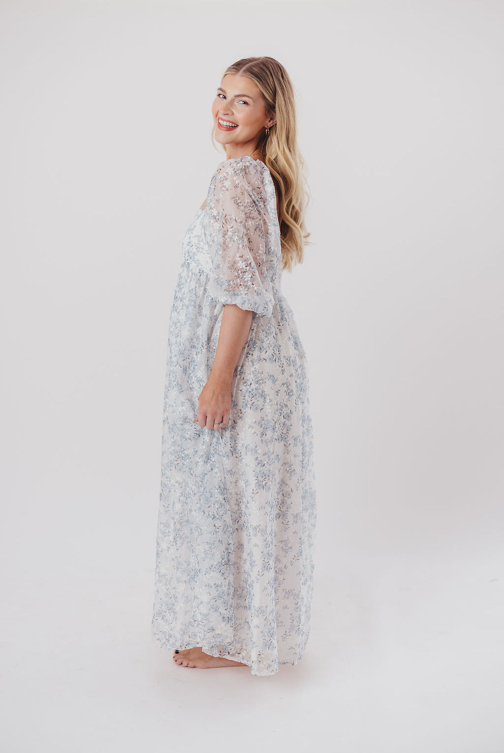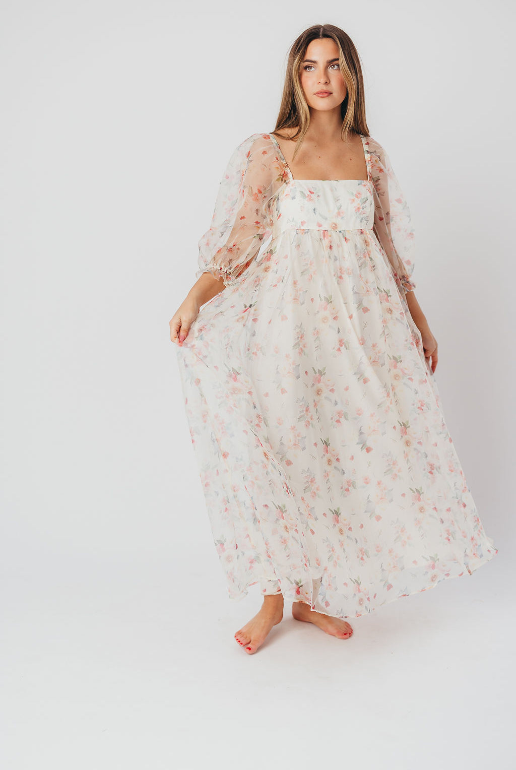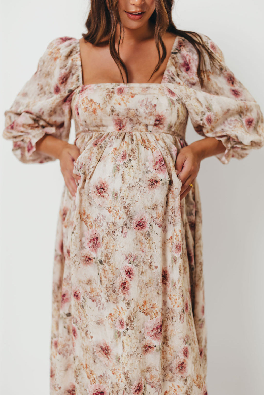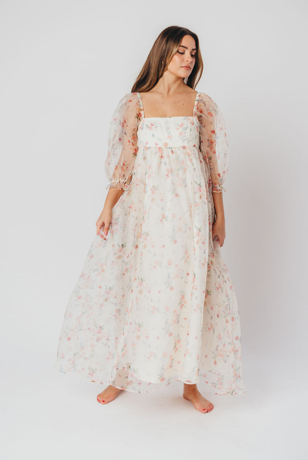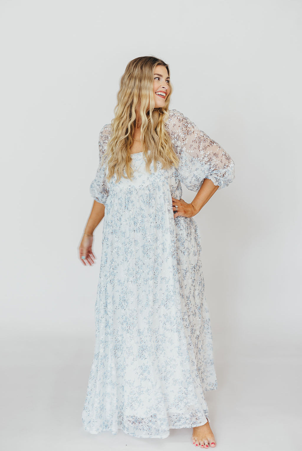 This dreamy maxi dress is pure romance; you'll practically float away in a stunning, gauzy cloud! Featuring a flattering square neckline and empire waist, it's giving elegant Bridgerton while staying fresh and charming. The Mona is a favorite with our expecting mamas, and is a perfect choice for maternity shoots or a special event brunch. Enjoy feeling like royalty!