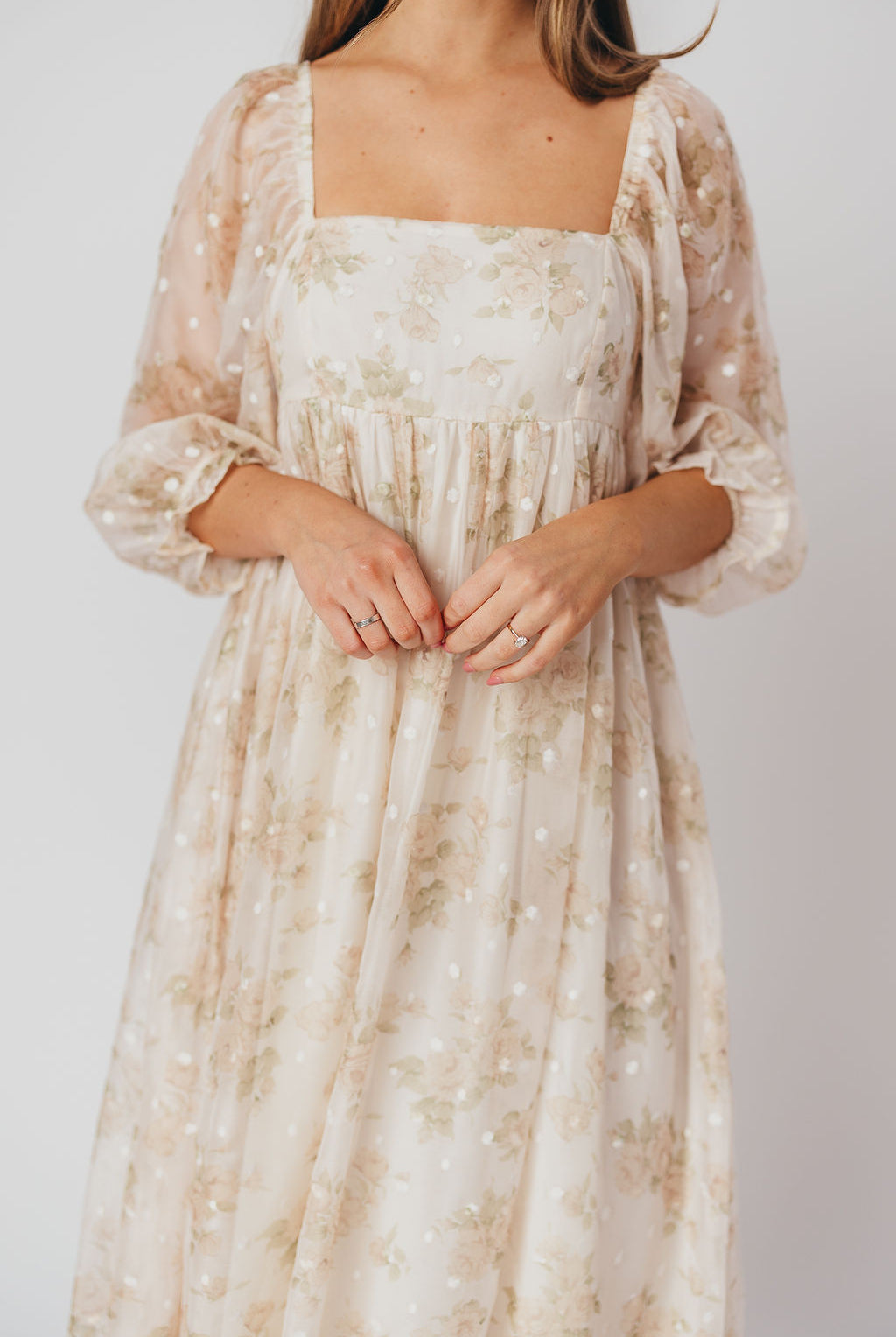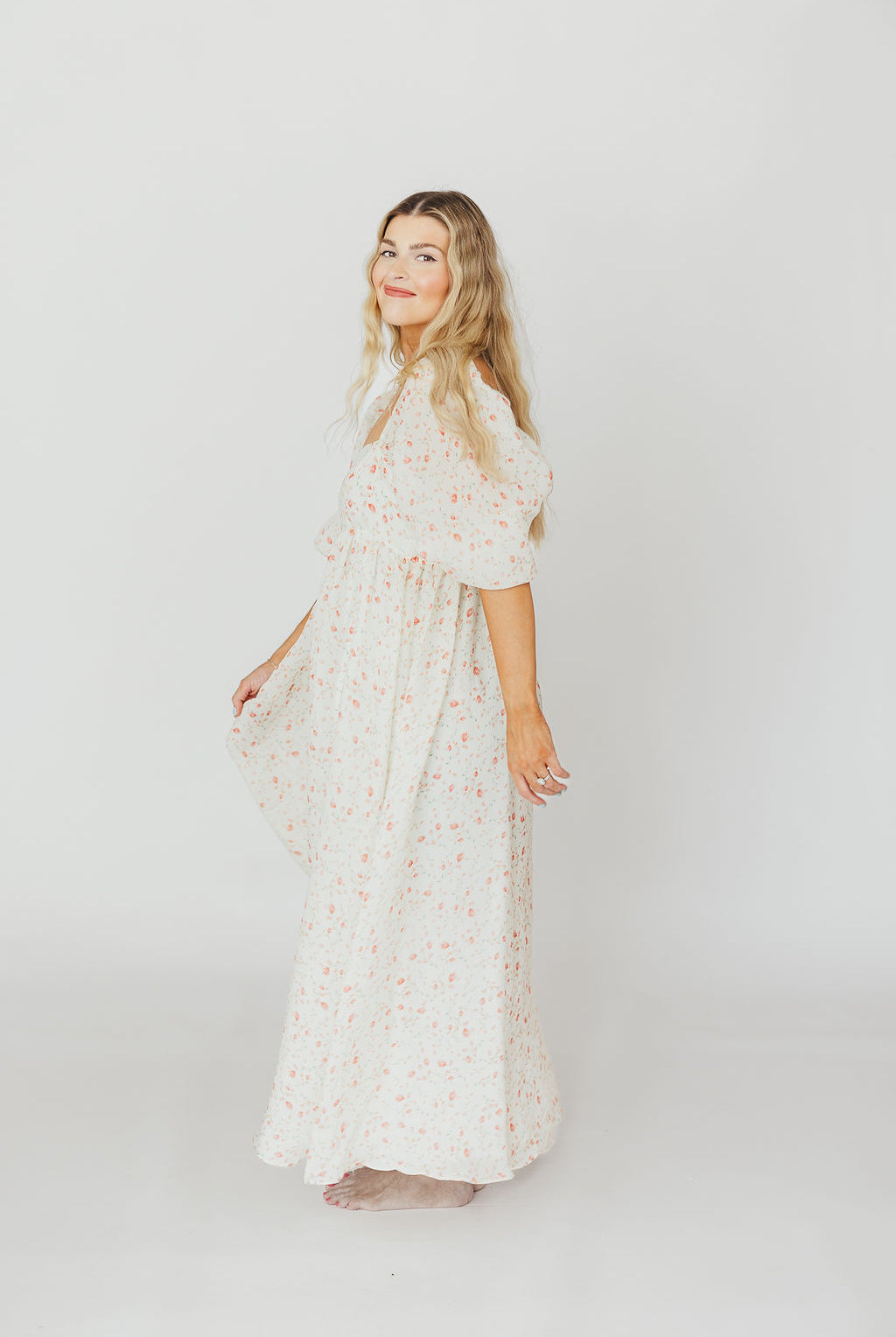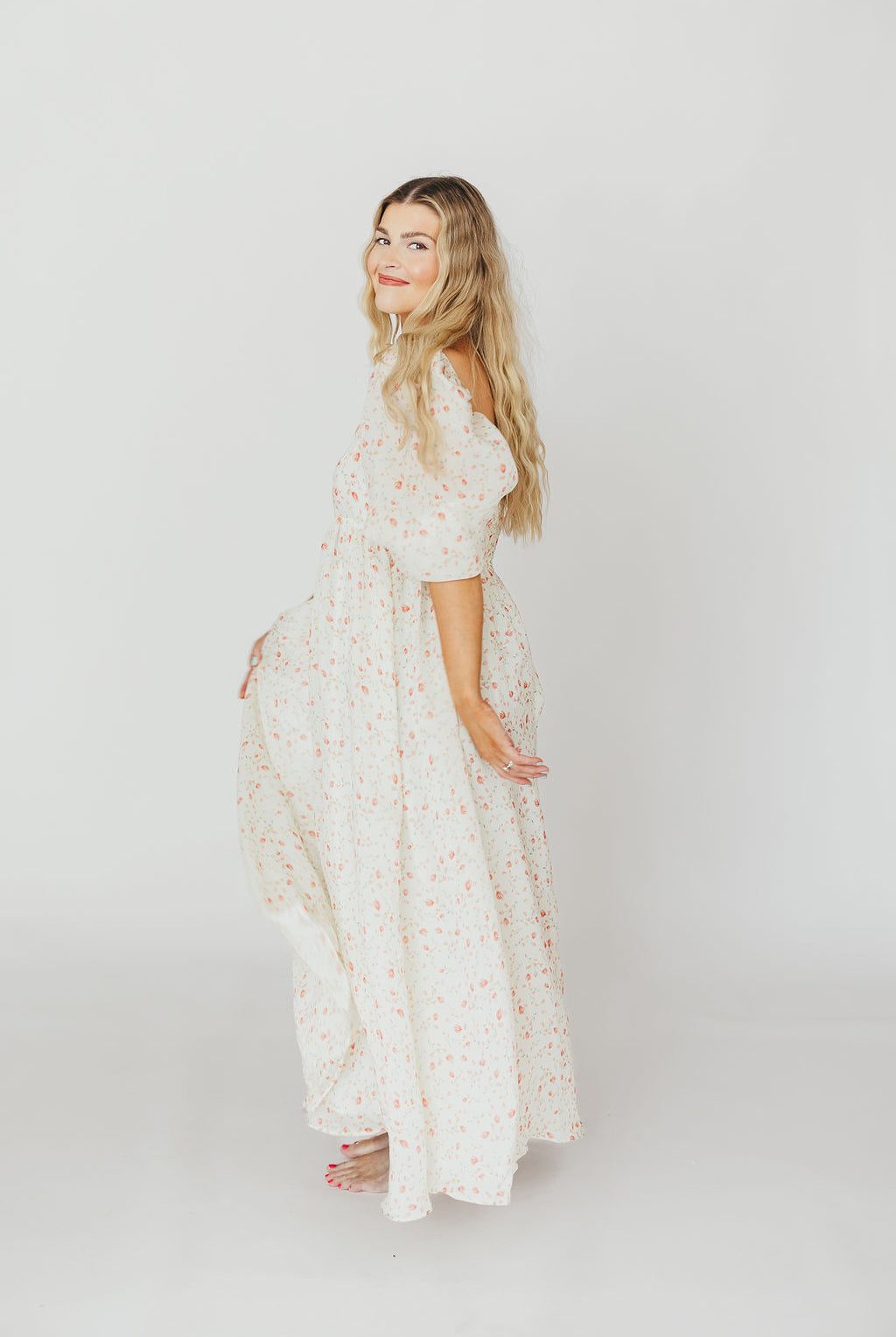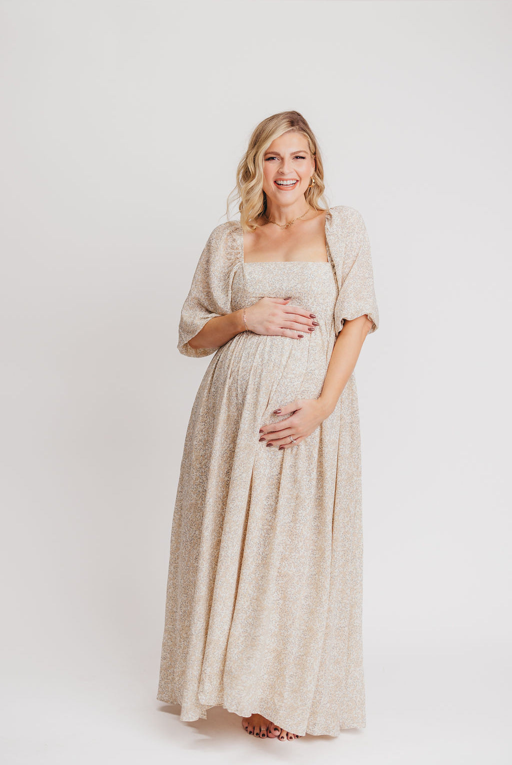 This dreamy maxi dress is pure romance; you'll practically float away in a stunning, gauzy cloud! Featuring a flattering square neckline and empire waist, it's giving elegant Bridgerton while staying fresh and charming. The Mona is a favorite with our expecting mamas, and is a perfect choice for maternity shoots or a special event brunch. Enjoy feeling like royalty!