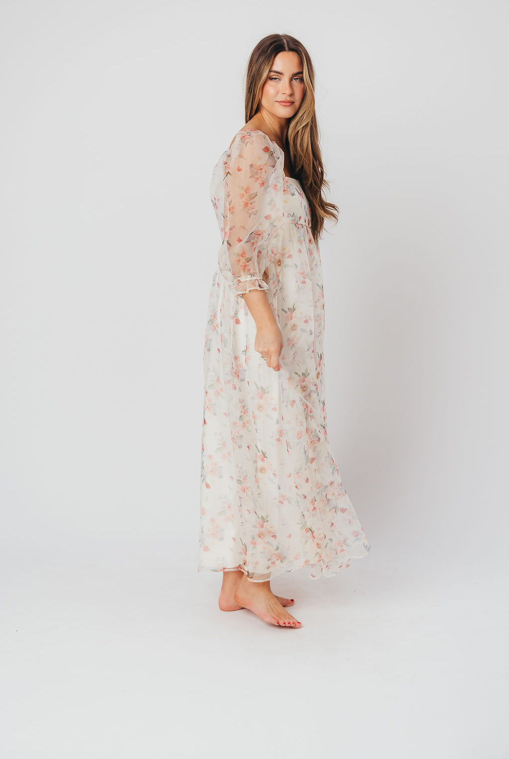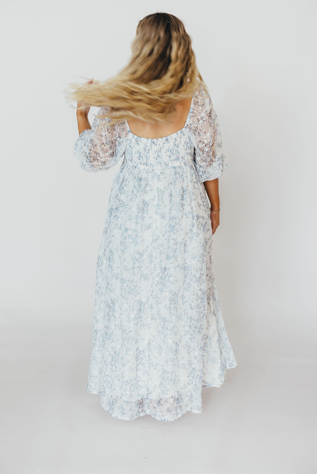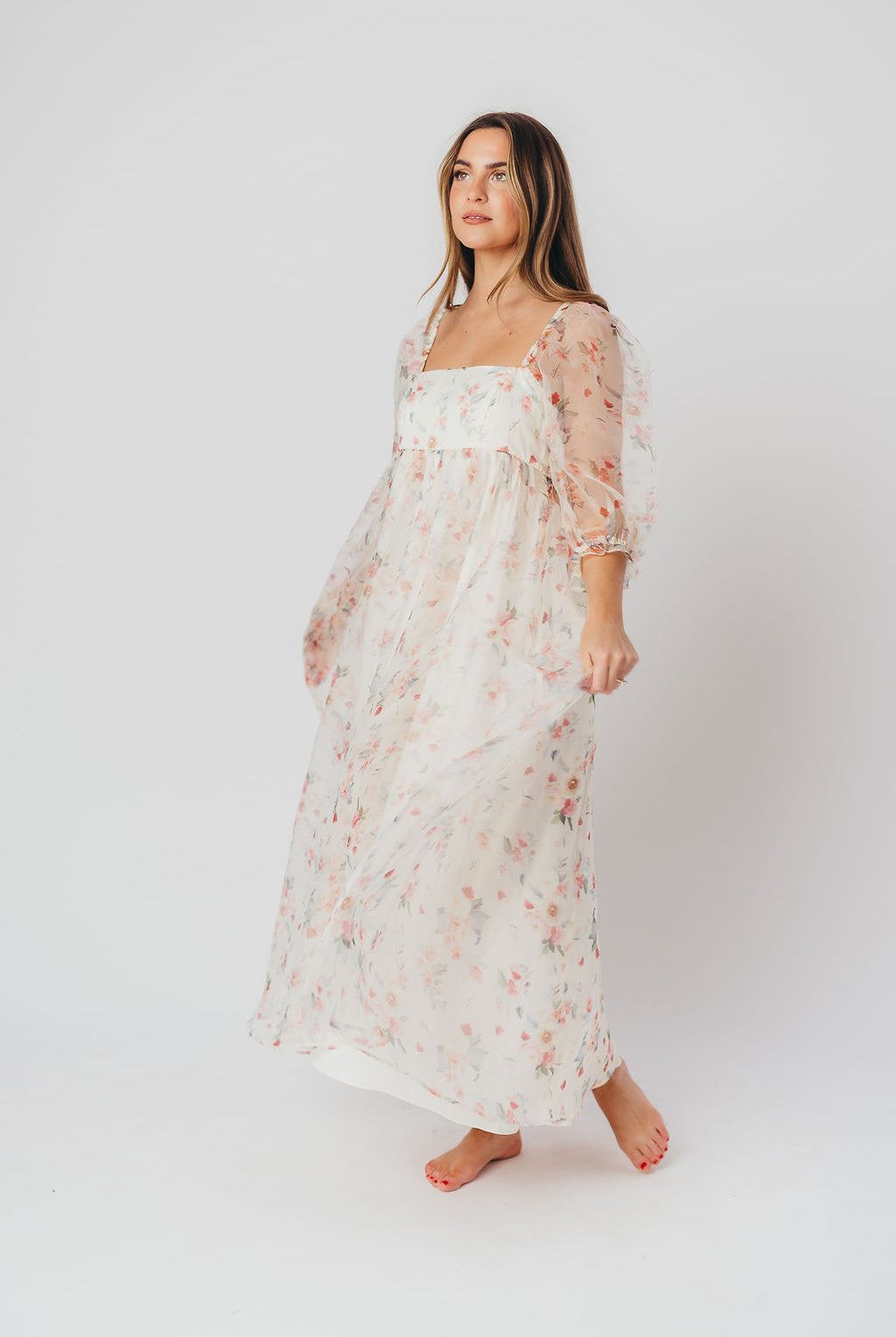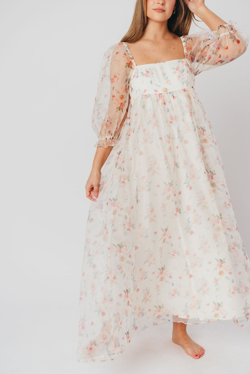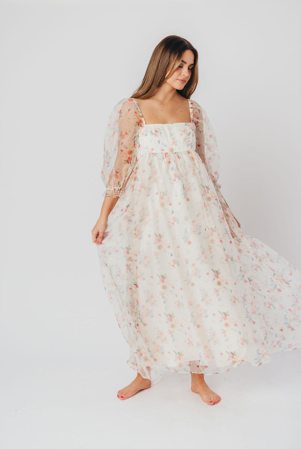 This dreamy maxi dress is pure romance; you'll practically float away in a stunning, gauzy cloud! Featuring a flattering square neckline and empire waist, it's giving elegant Bridgerton while staying fresh and charming. The Mona is a favorite with our expecting mamas, and is a perfect choice for maternity shoots or a special event brunch. Enjoy feeling like royalty!