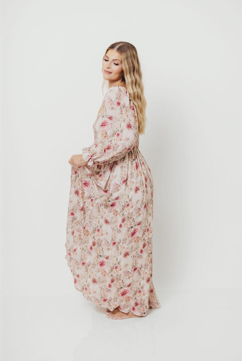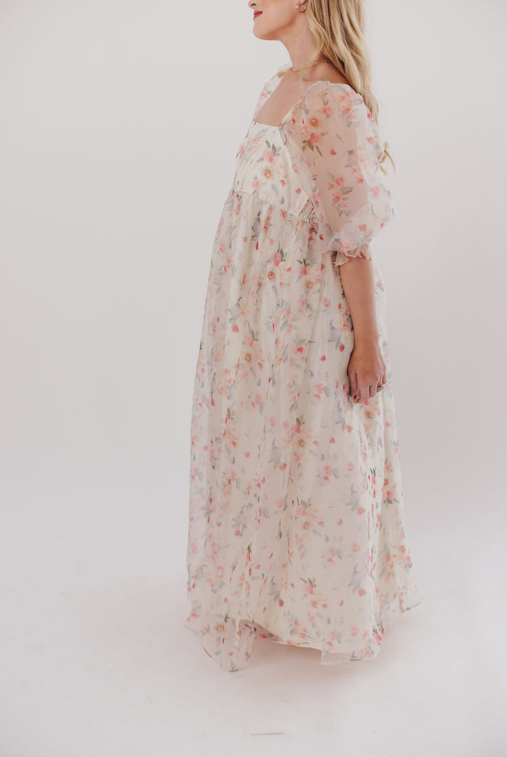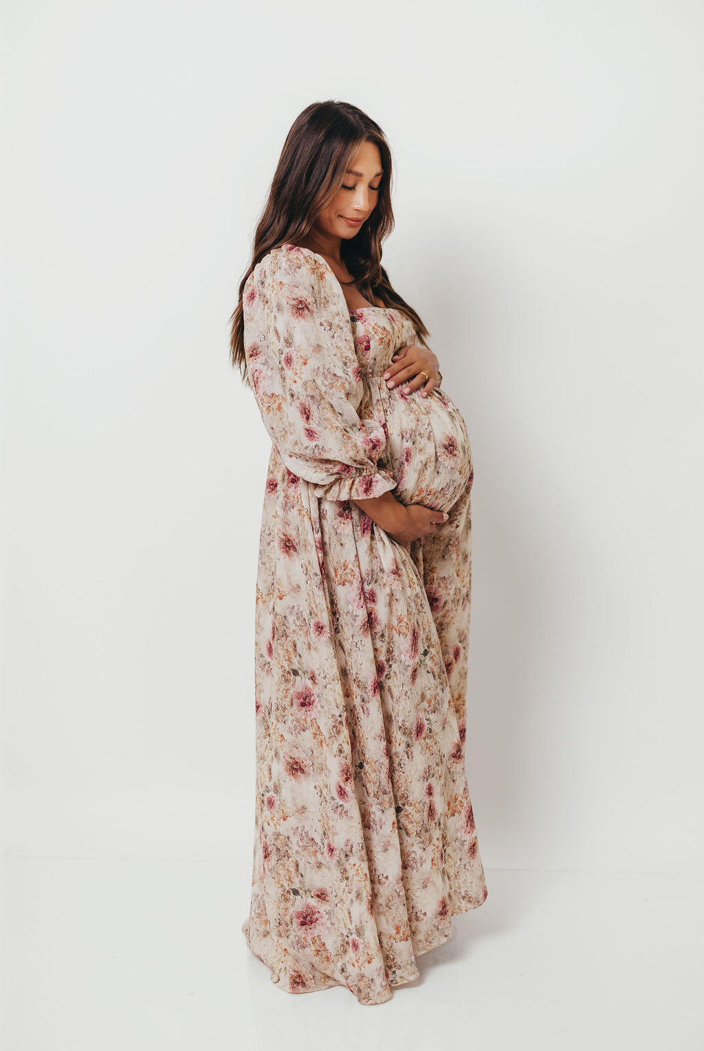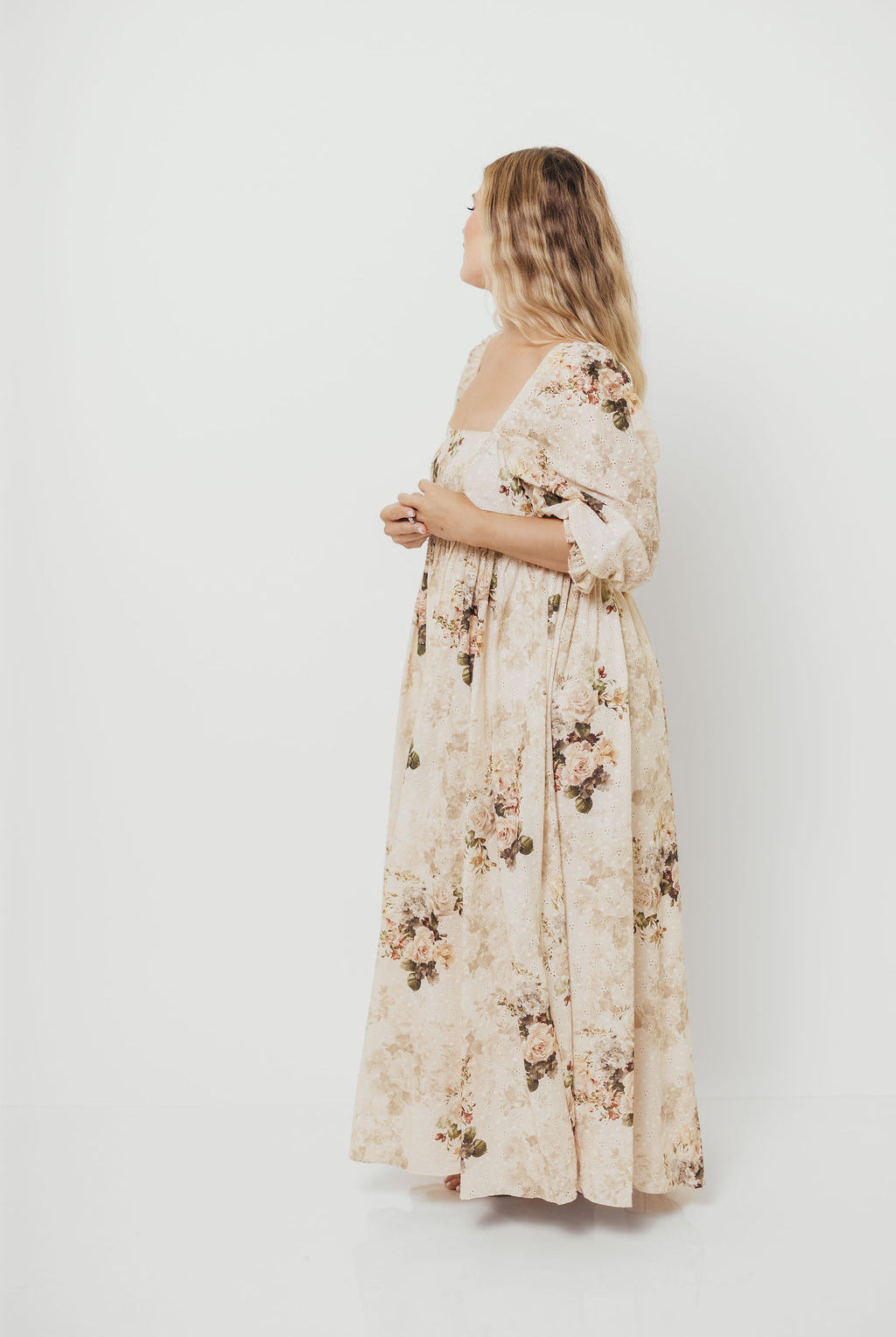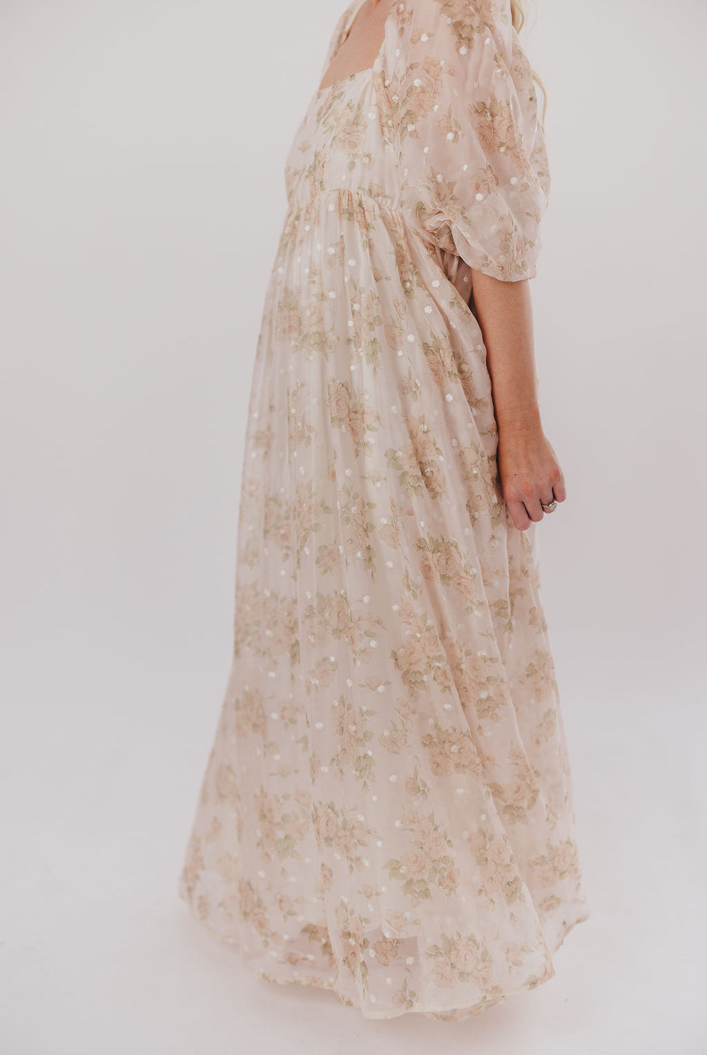 This dreamy maxi dress is pure romance; you'll practically float away in a stunning, gauzy cloud! Featuring a flattering square neckline and empire waist, it's giving elegant Bridgerton while staying fresh and charming. The Mona is a favorite with our expecting mamas, and is a perfect choice for maternity shoots or a special event brunch. Enjoy feeling like royalty!