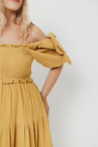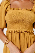 Elena 100% Cotton Midi Dress in Dusty Mustard