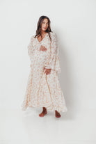 Lisa Woven Floral V-Neck Maxi Dress with Detachable Liner in Cream Multi - Bump Friendly