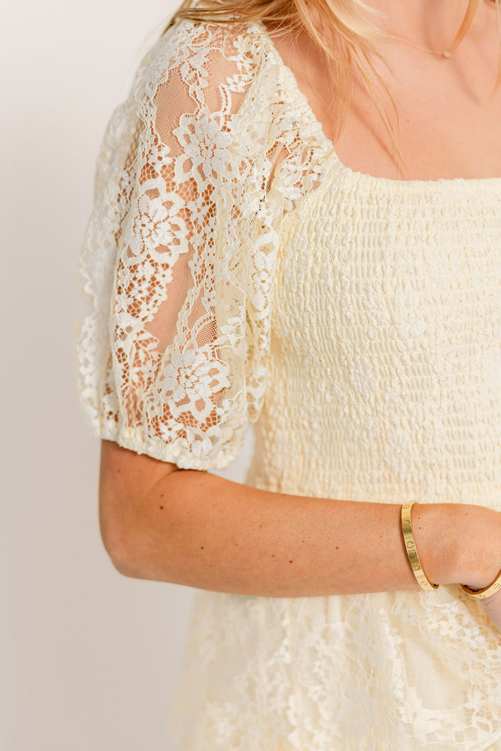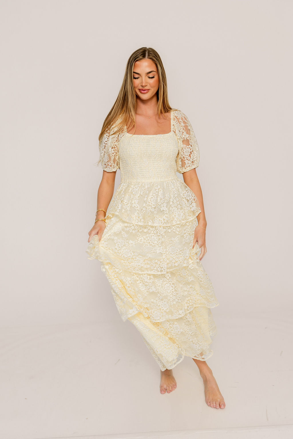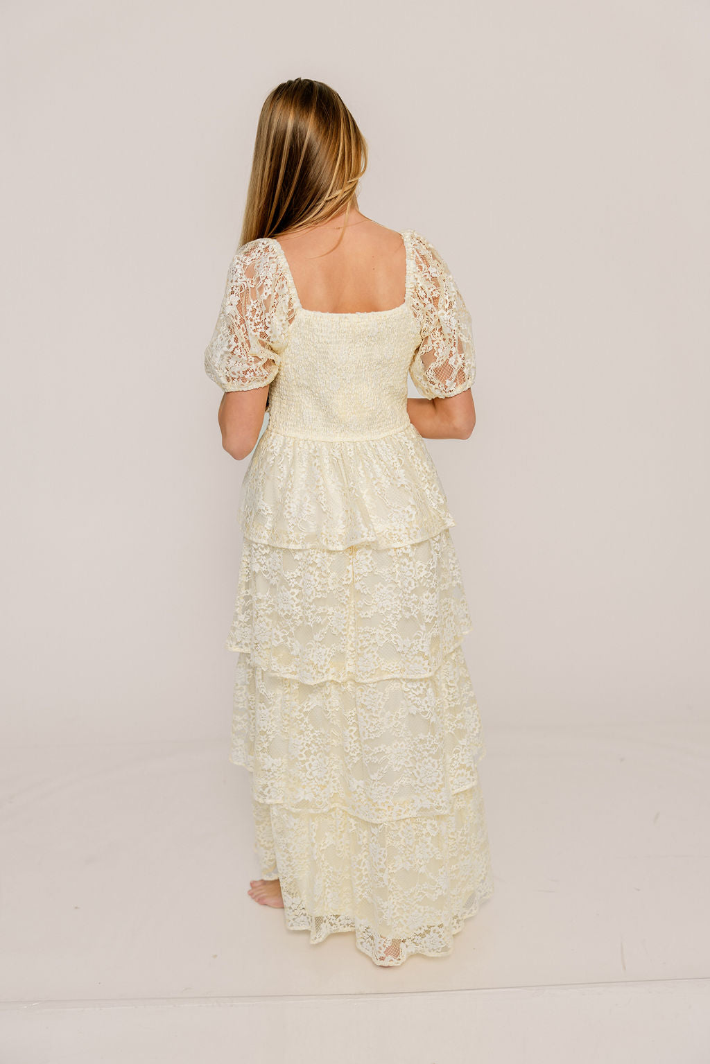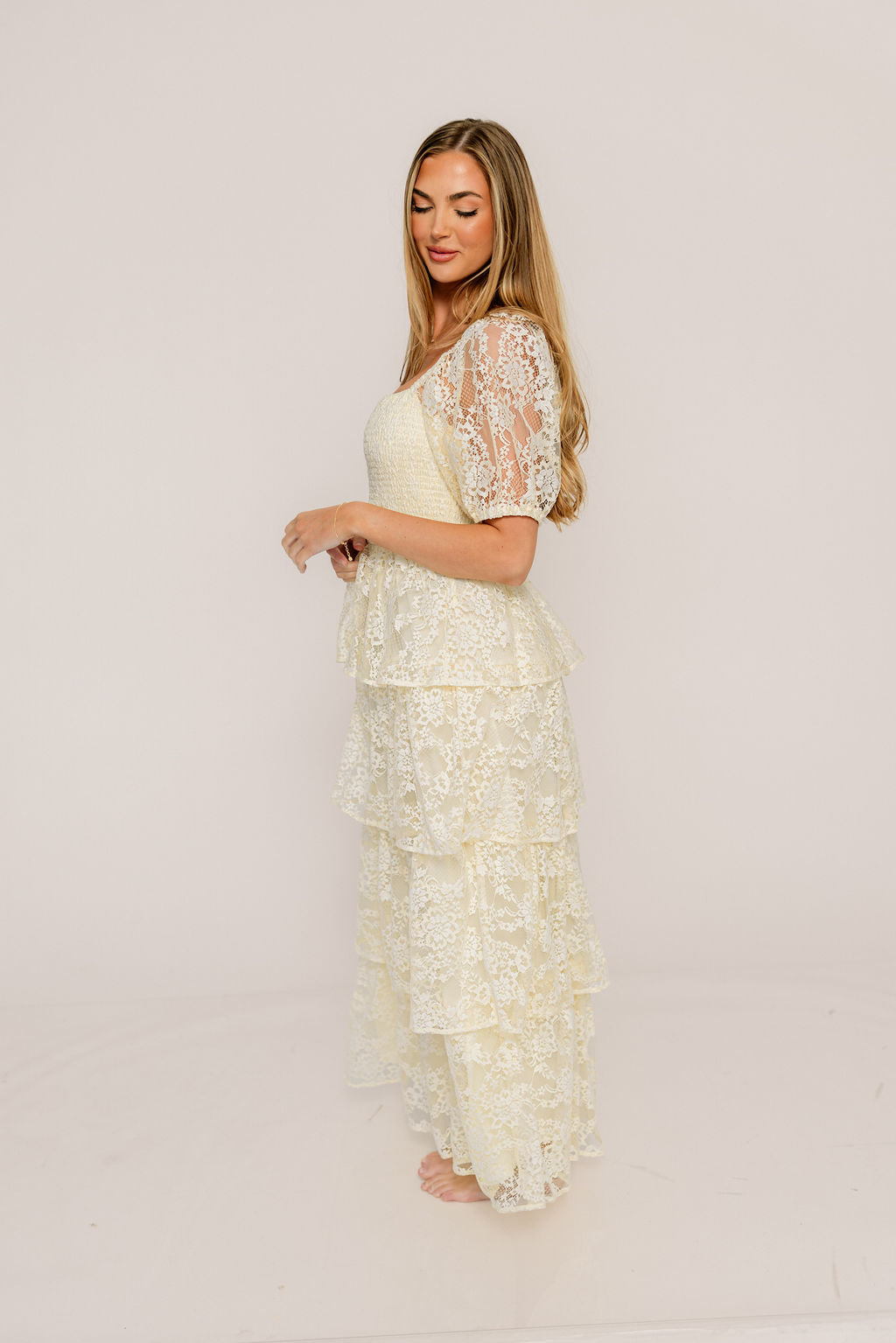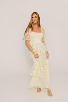 Athena Lace Tiered Smocked Maxi Dress in Butter Cream - Bump Friendly
