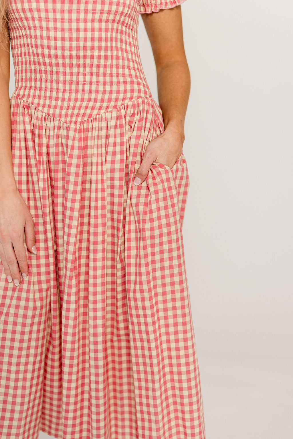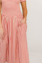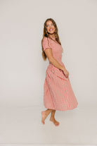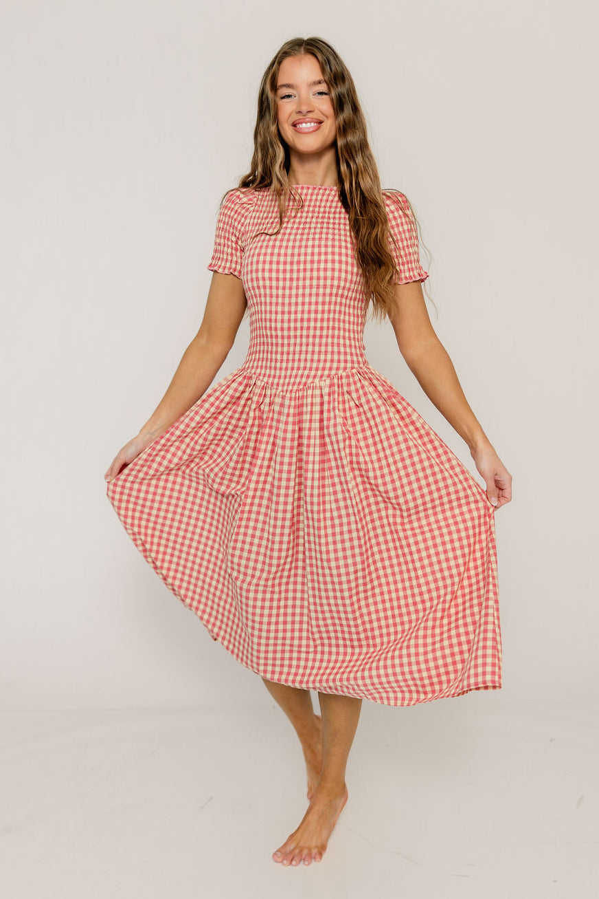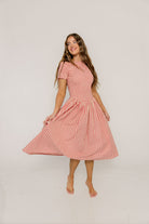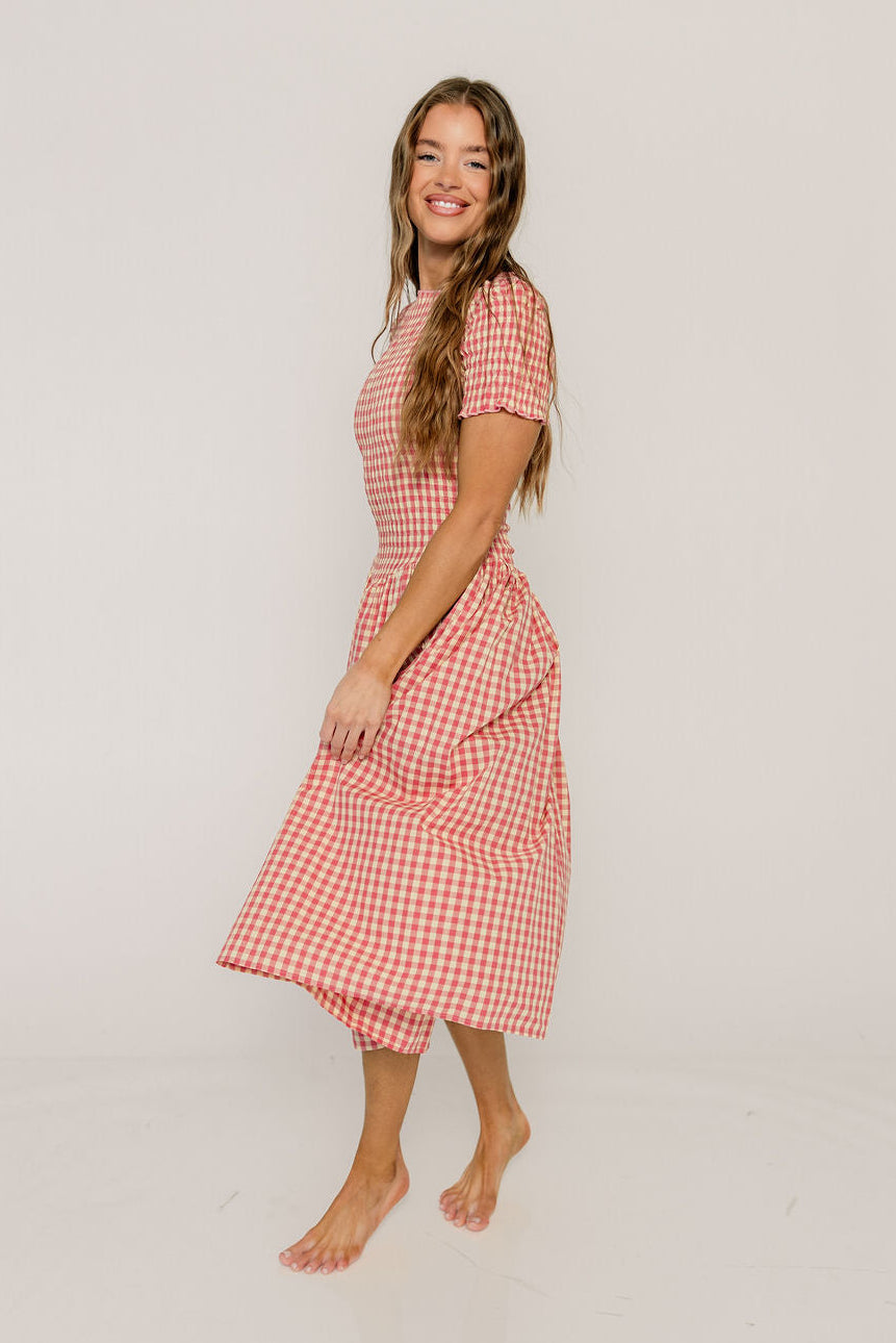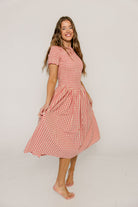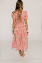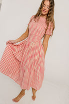 Etta 100% Cotton Smocked Gingham Midi Dress in Pink