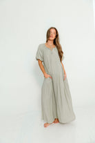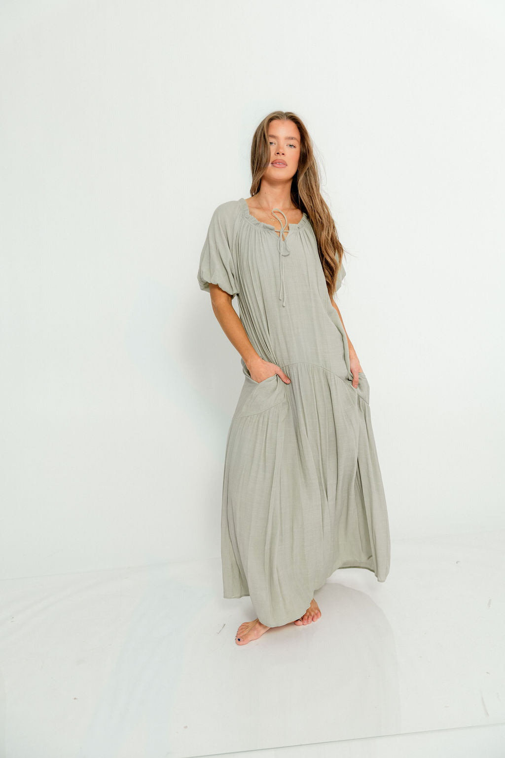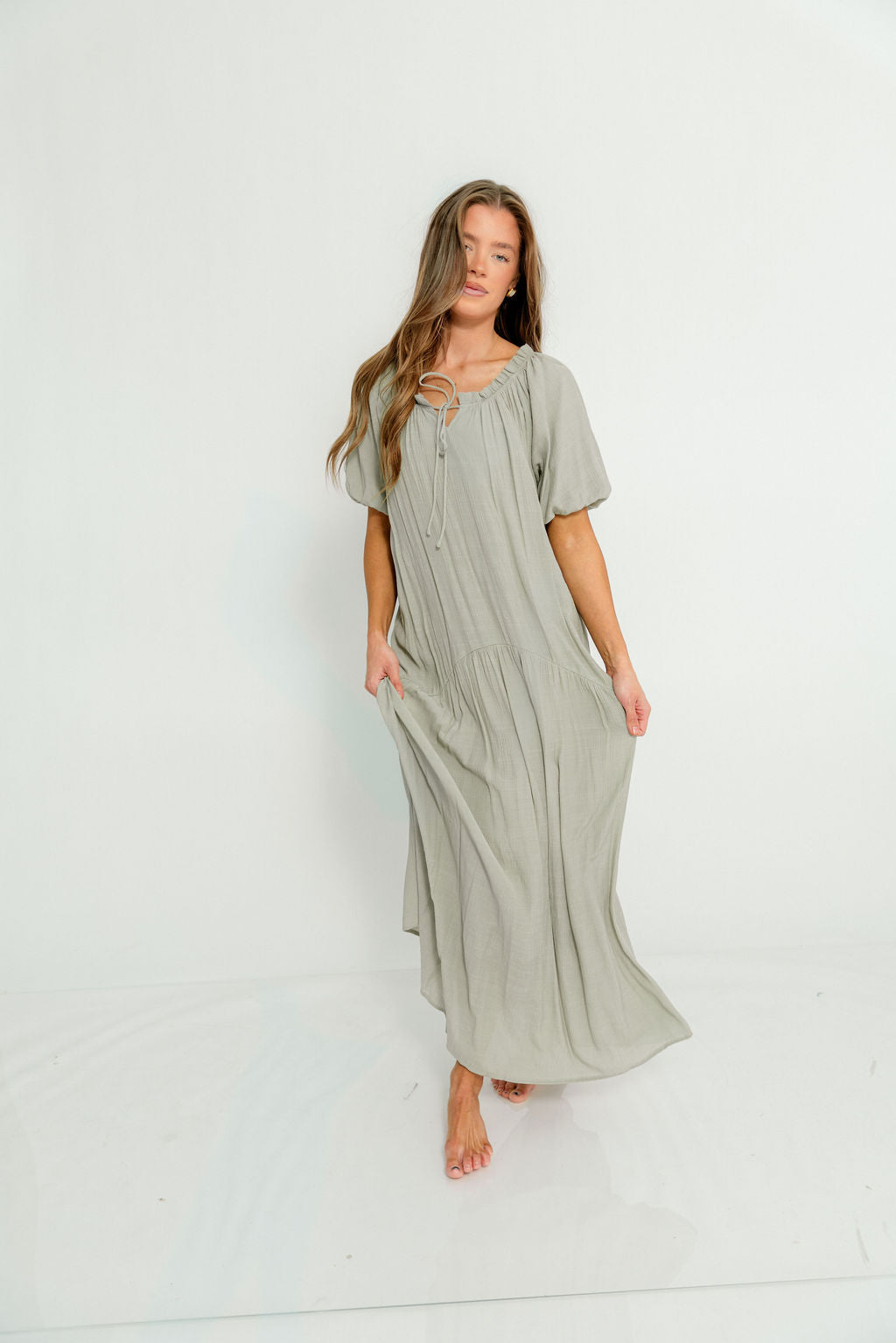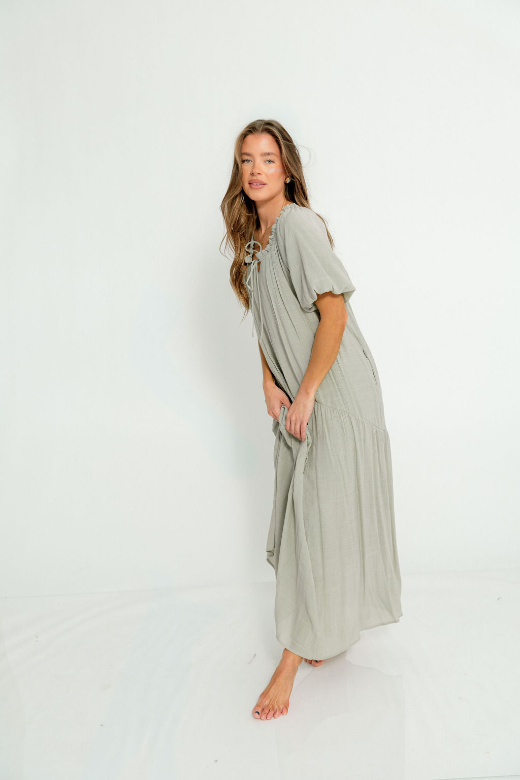 Christina Puffed Sleeve Maxi Dress in Dusty Sage - Bump Friendly