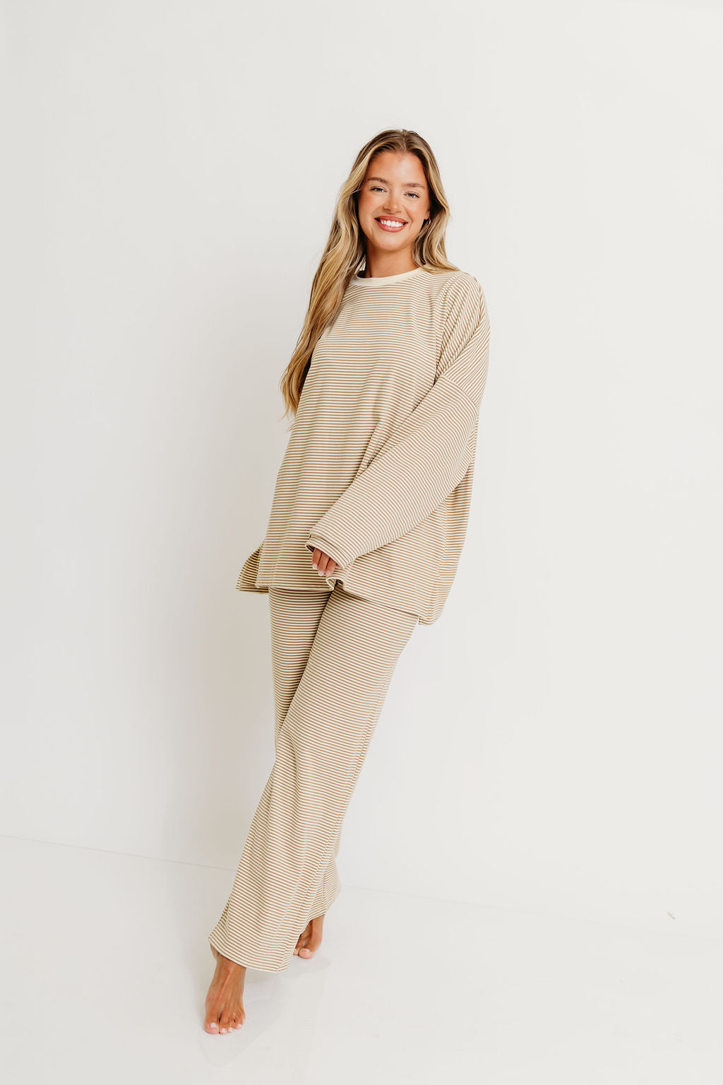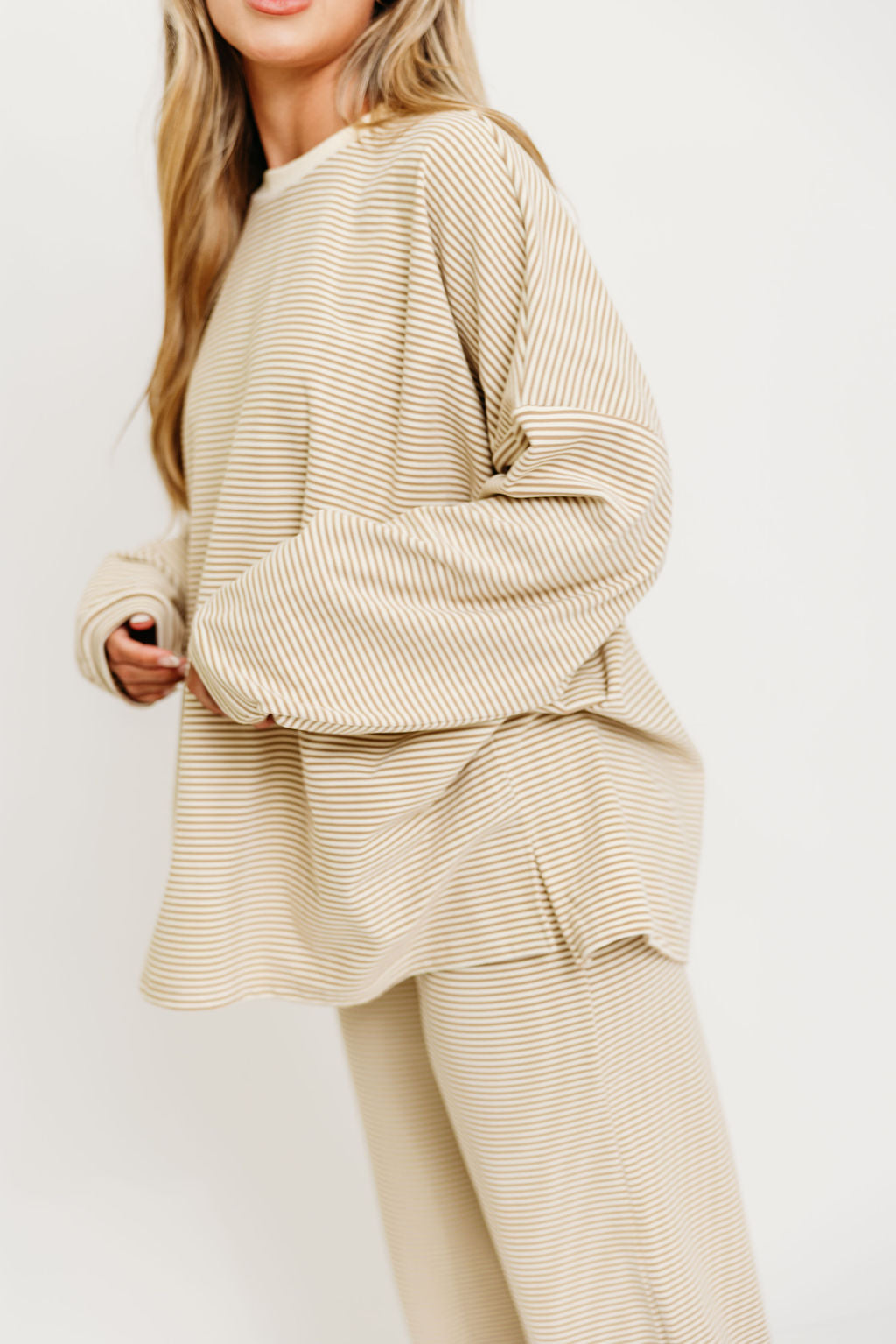 Naomi Striped Fleece Oversized Top in Beige