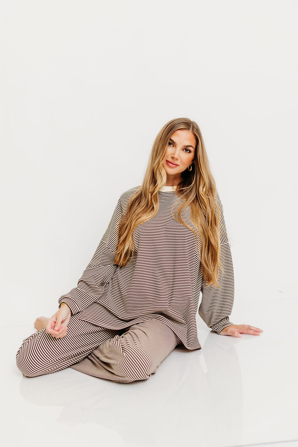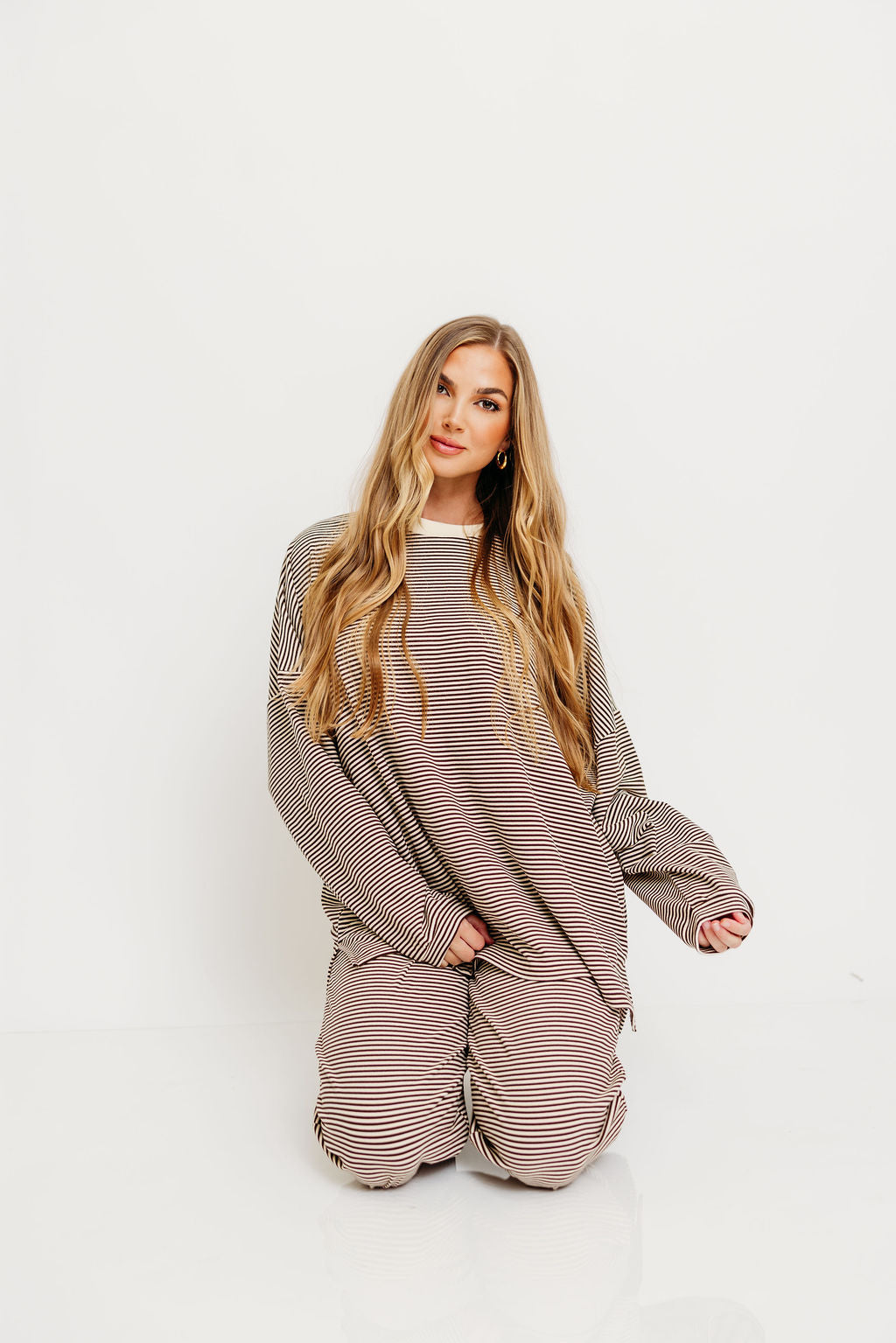 Get cozy (and trendy) with our new Naomi Top! This top is oversized yet sophisticated, the perfect top for pairing with your favorite boxer shorts or the matching Campbell Fleece Pants.