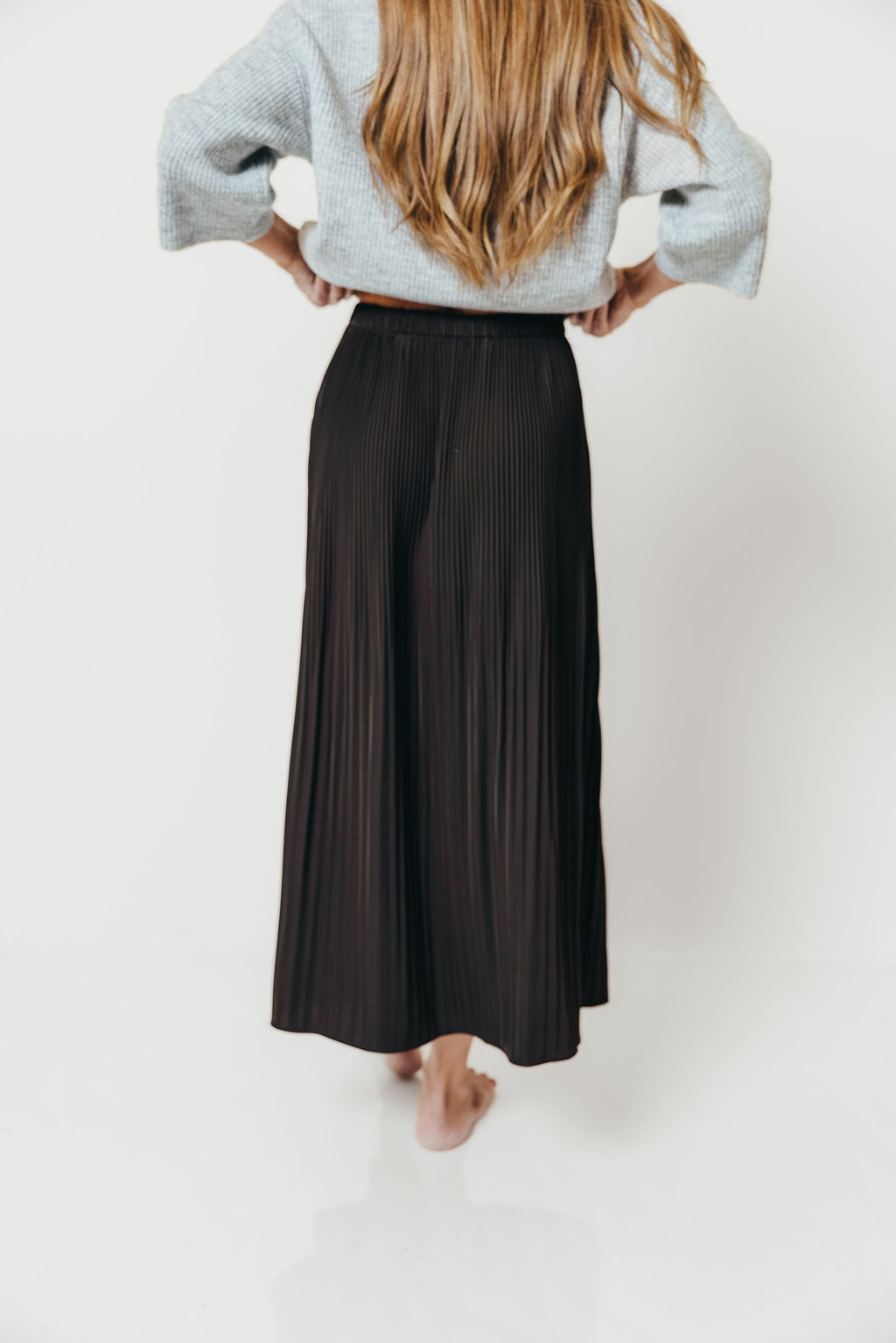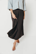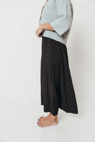 GARMENT DETAILS: Silky pleated maxi skirt with elasticated waistband and flowy silhouette.