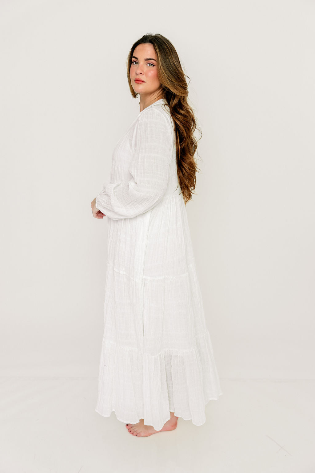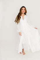 Anna Cotton-Blend Button Down Maxi Dress in Ivory - Bump Friendly