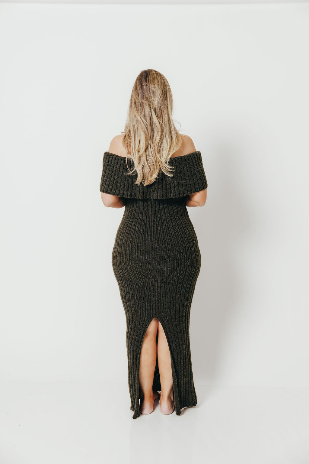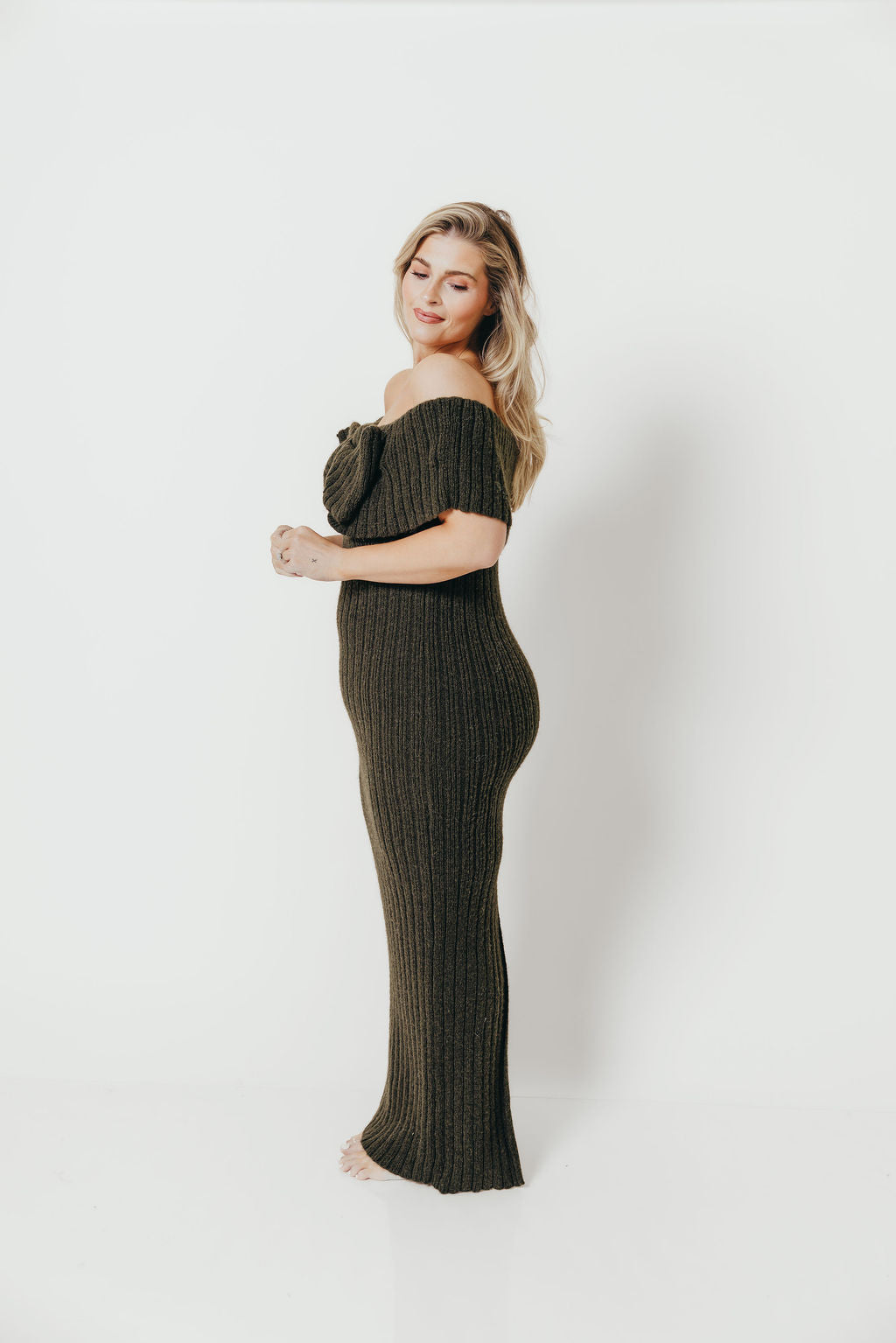 Aston Bow Front Maxi Sweater Dress in Dark Green - Bump Friendly