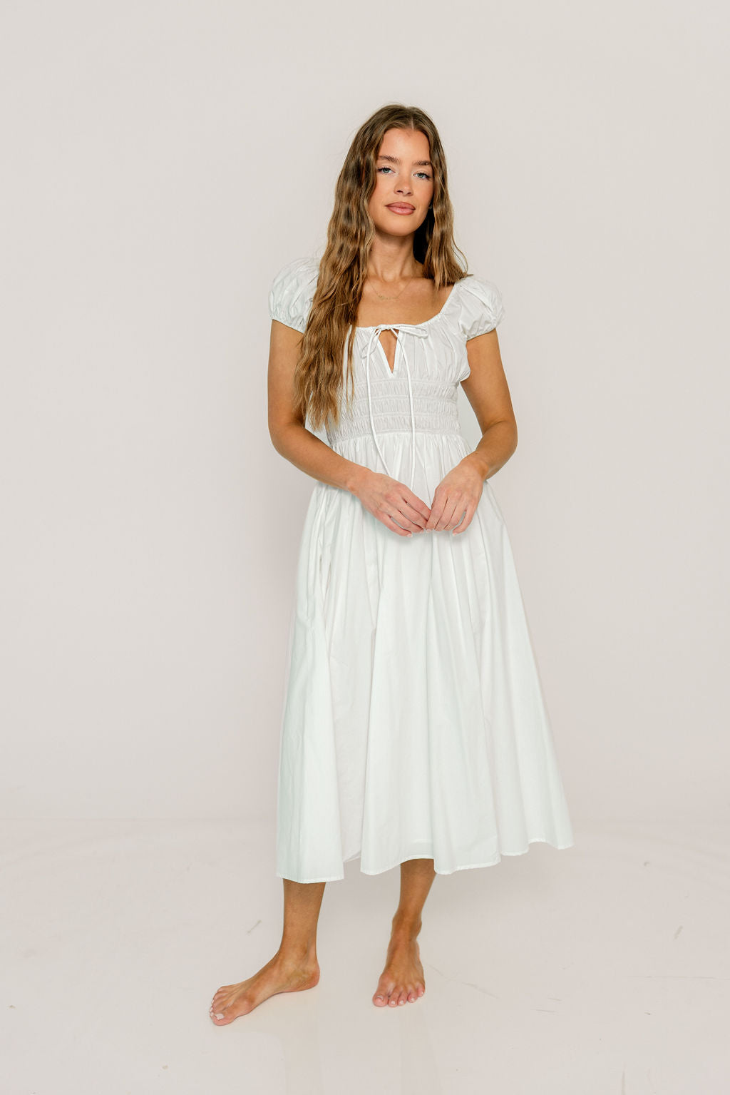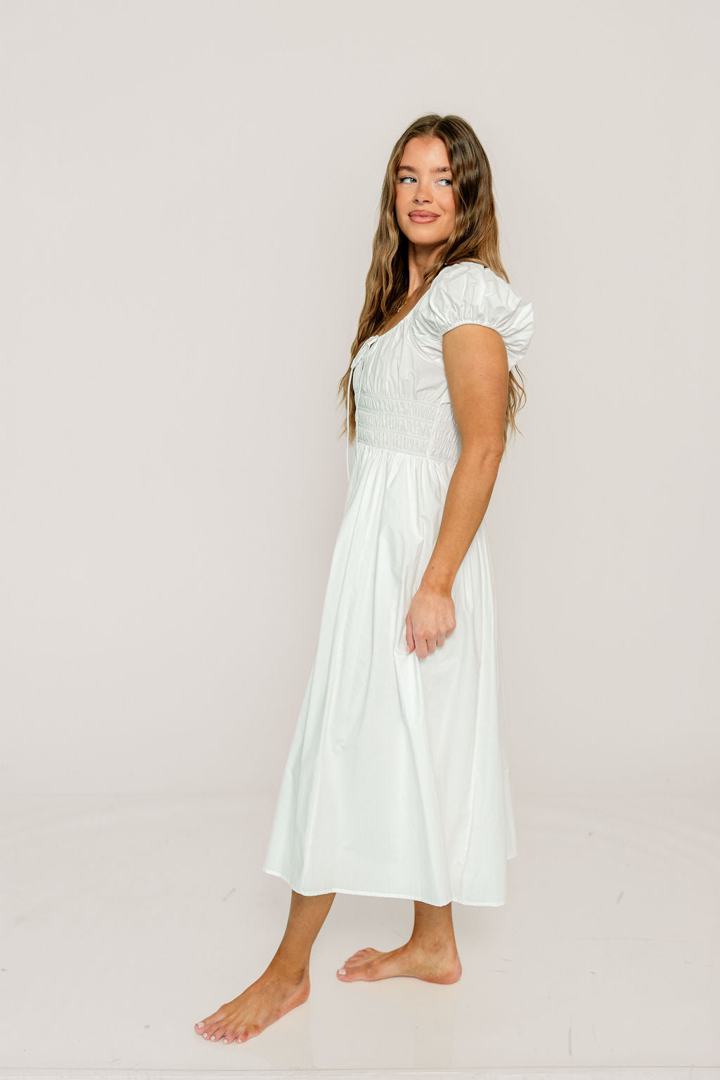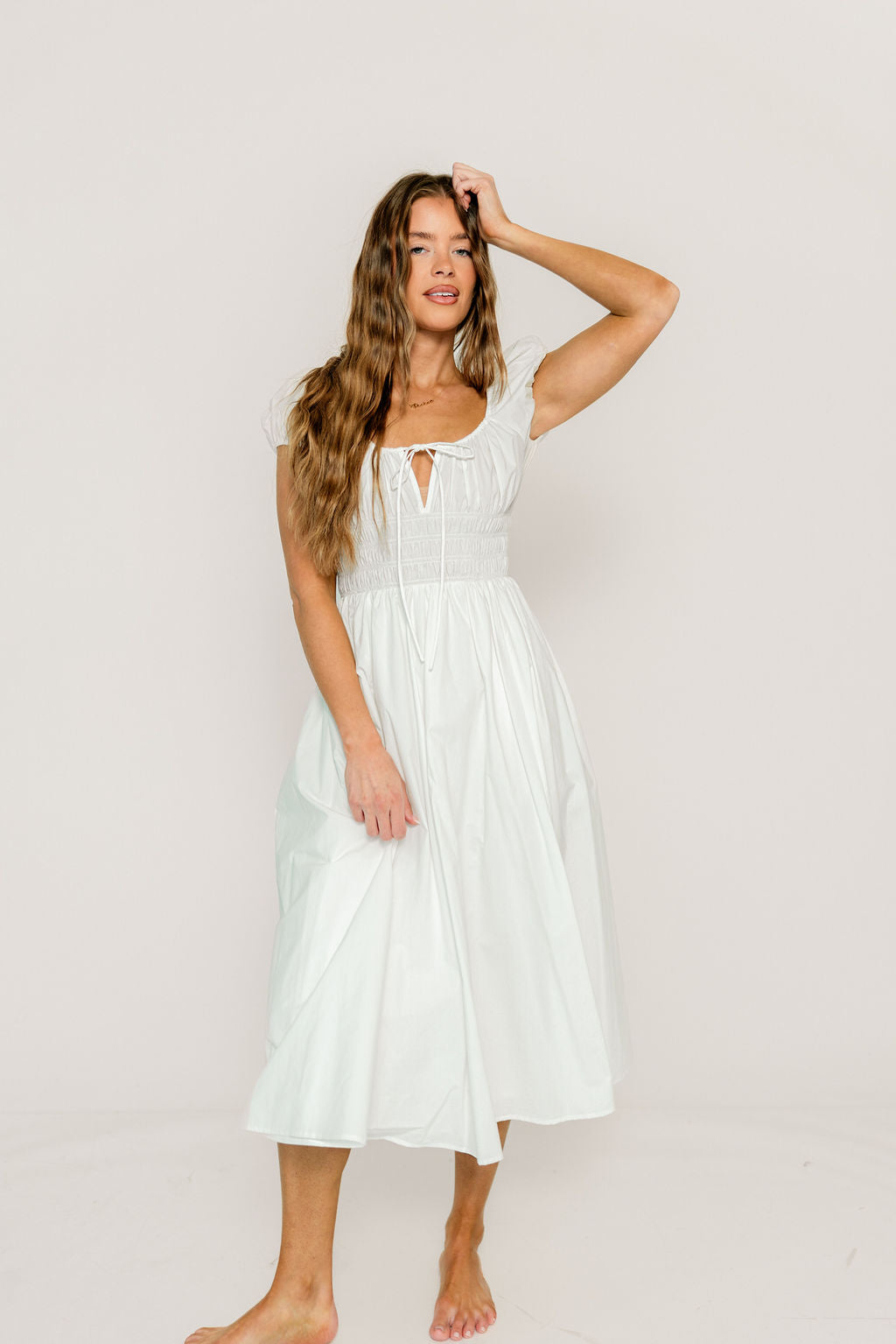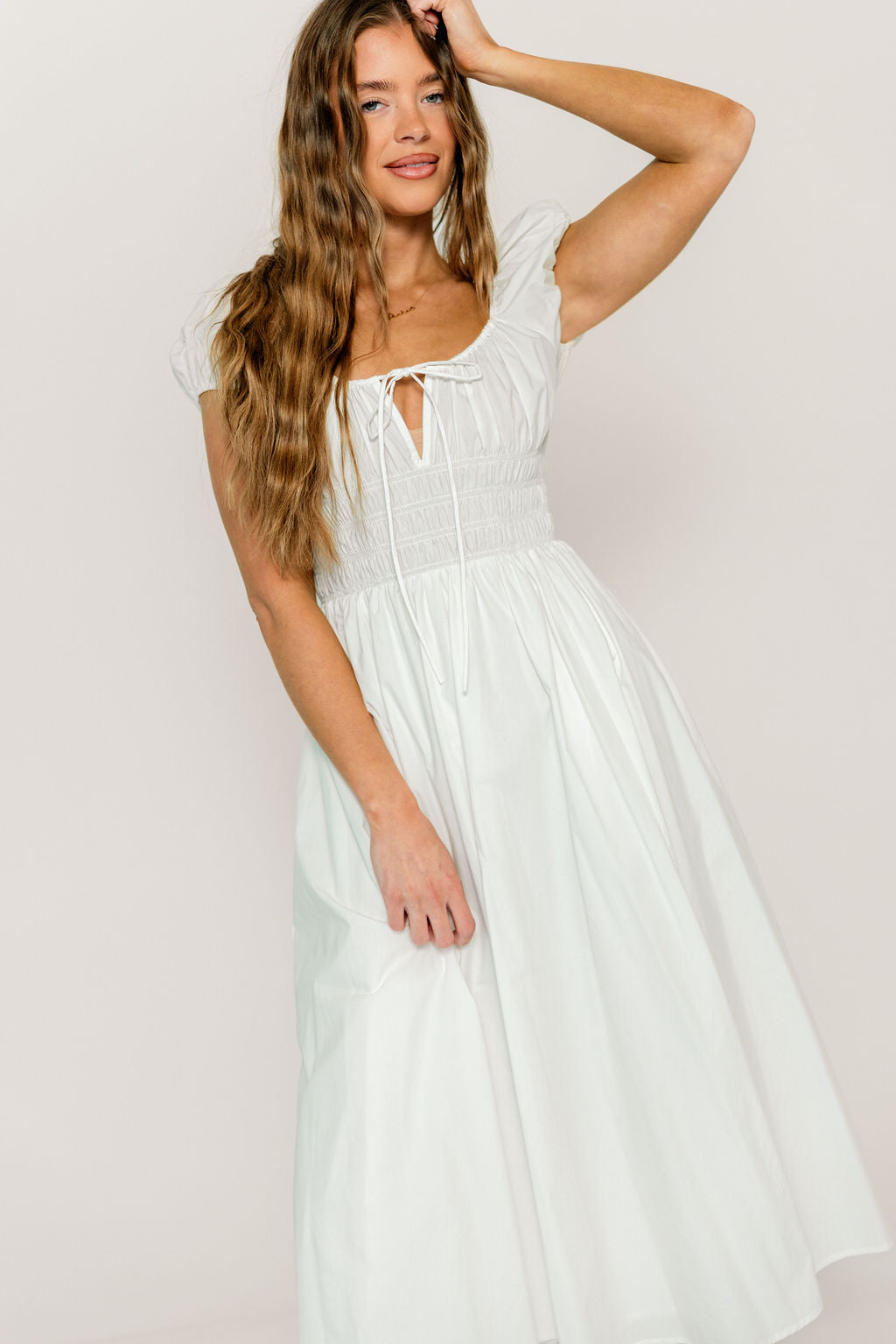 Step into sunshine and style with the Kylie Maxi Dress in White. Flowing effortlessly from shoulders to floor, this dress brings a breezy, elegant charm to any occasion. Its light hue pairs perfectly with summer smiles and spontaneous adventures, making every moment feel like a celebration. Whether you're twirling through a garden party or strolling downtown, this dress promises to keep the fun flowing.