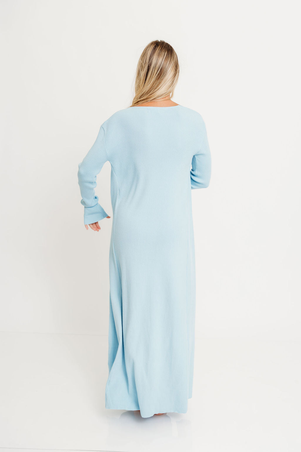 Lina Two Piece Dress Set in Dusty Blue - Bump Friendly