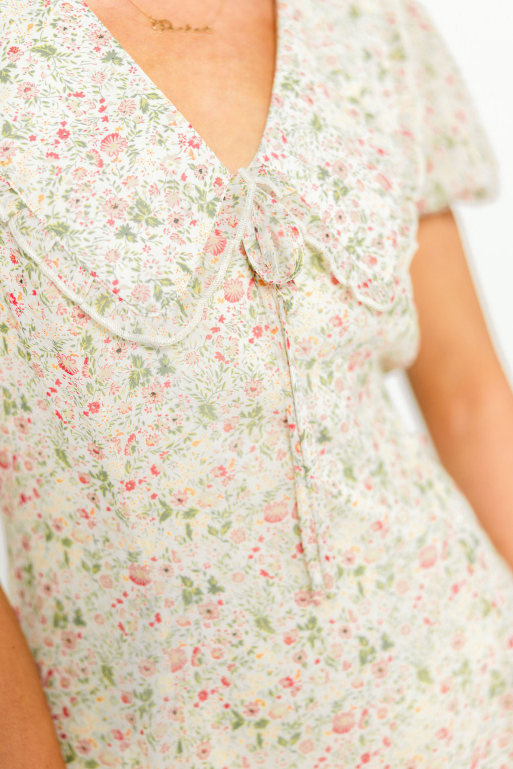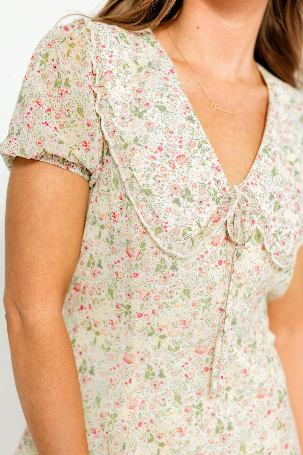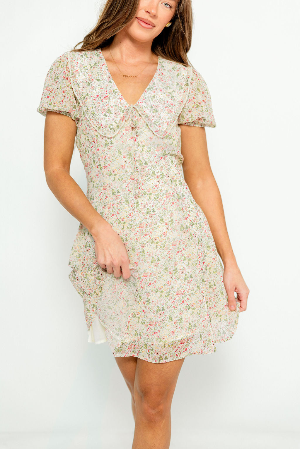 Samantha Floral Doll Collar Mini Dress in English Rose