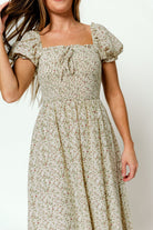 This effortless cotton midi charmingly feminine, with a dainty floral print and comfortable smocked design that shows off your curves and makes a subtle statement.