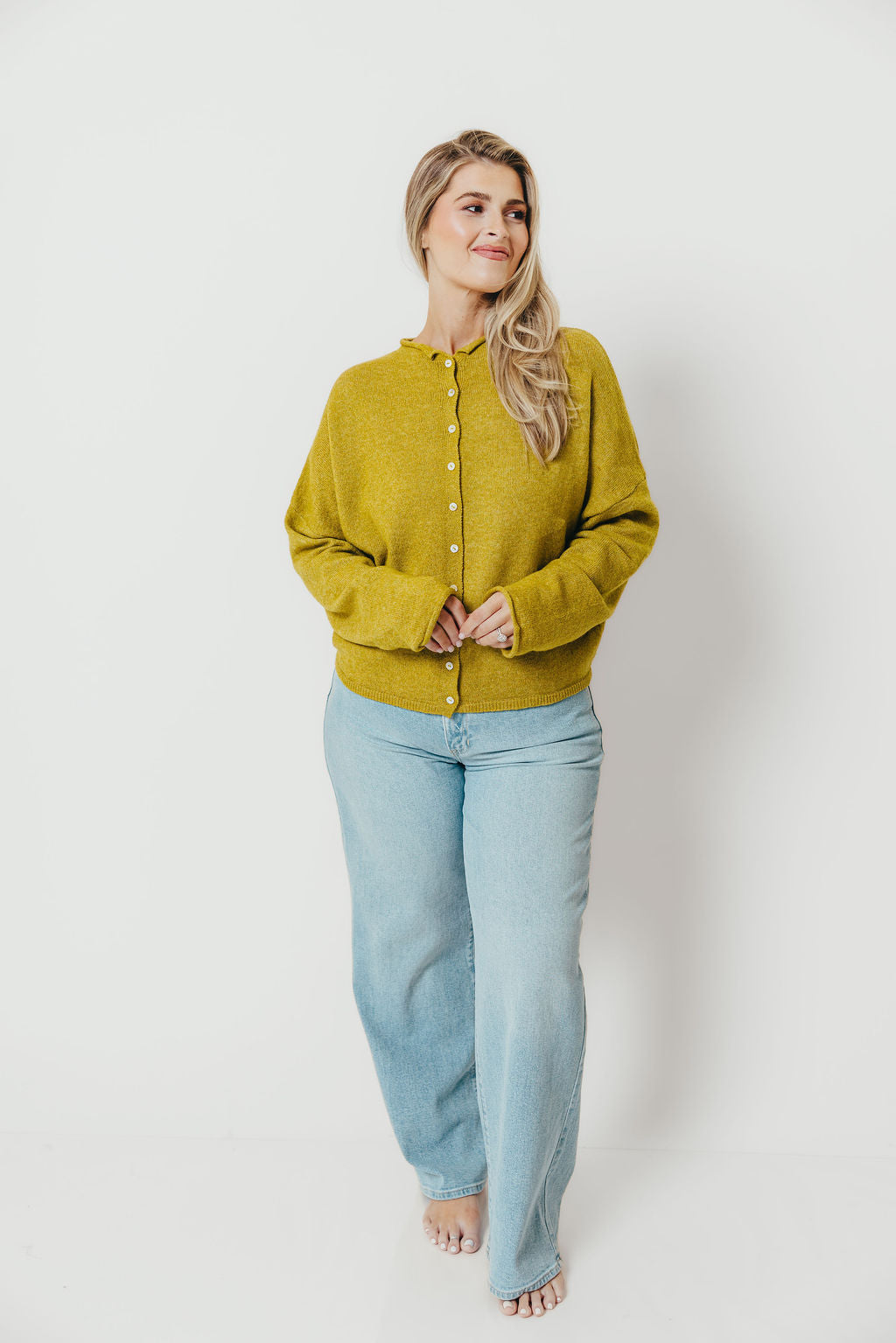 GARMENT DETAILS: Soft and feminine cardigan with long sleeves and rolled hem. Features dainty button front closure.