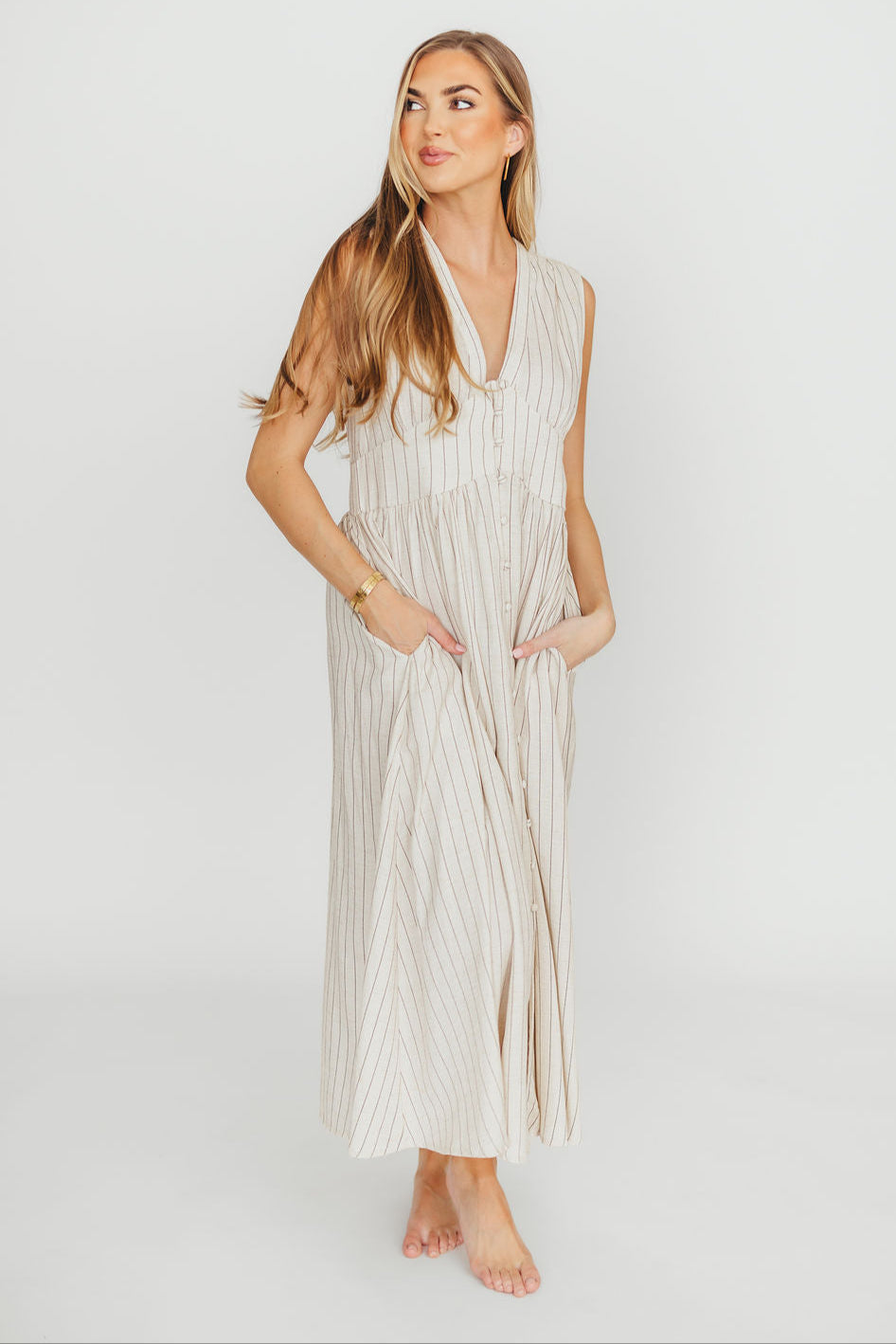 Pippy Button Down Maxi Dress in Natural/Black - Nursing Friendly