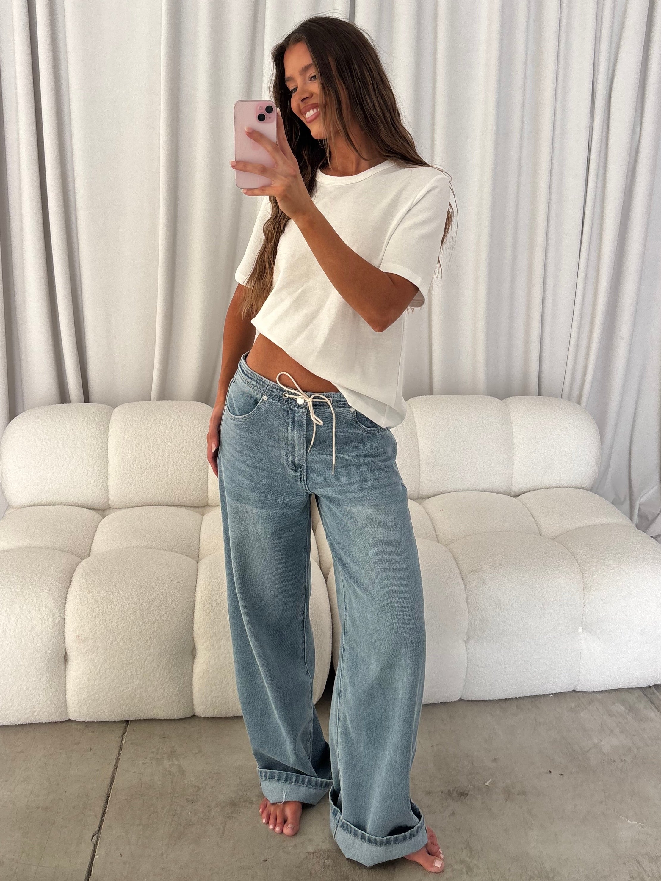 Lia Drawstring Wide Leg Pants in Blue Bell