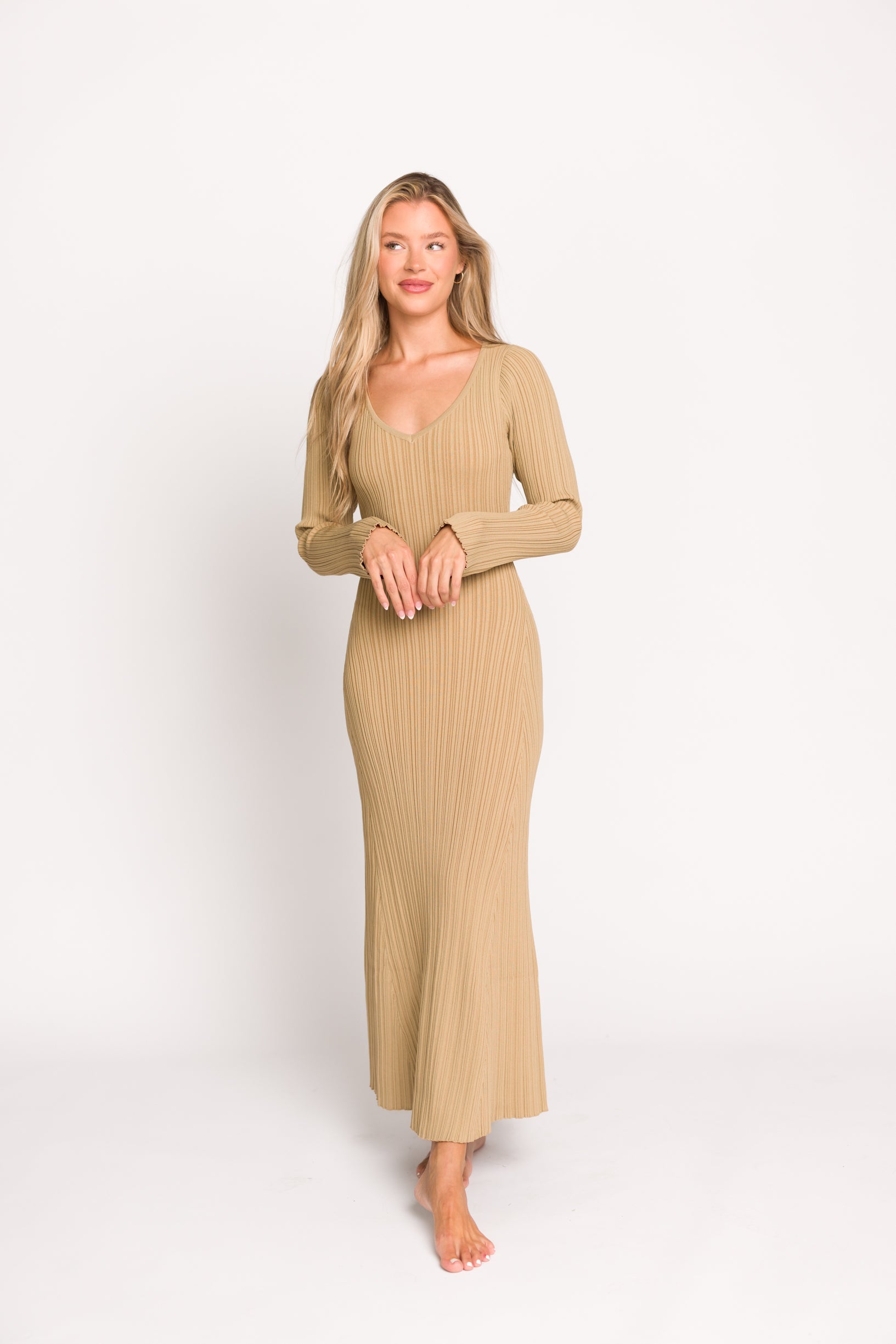 Keaton Knit Maxi Dress with V-Neckline in Beige *Final Sale*
