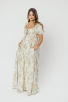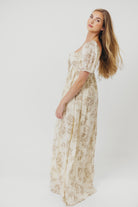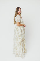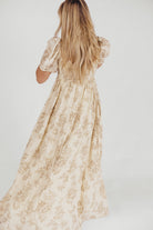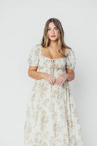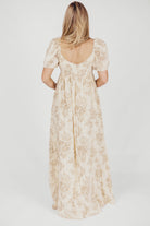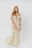 Haven 100% Cotton Tie-Front Maxi Dress in Taupe/Brown Floral - Bump Friendly