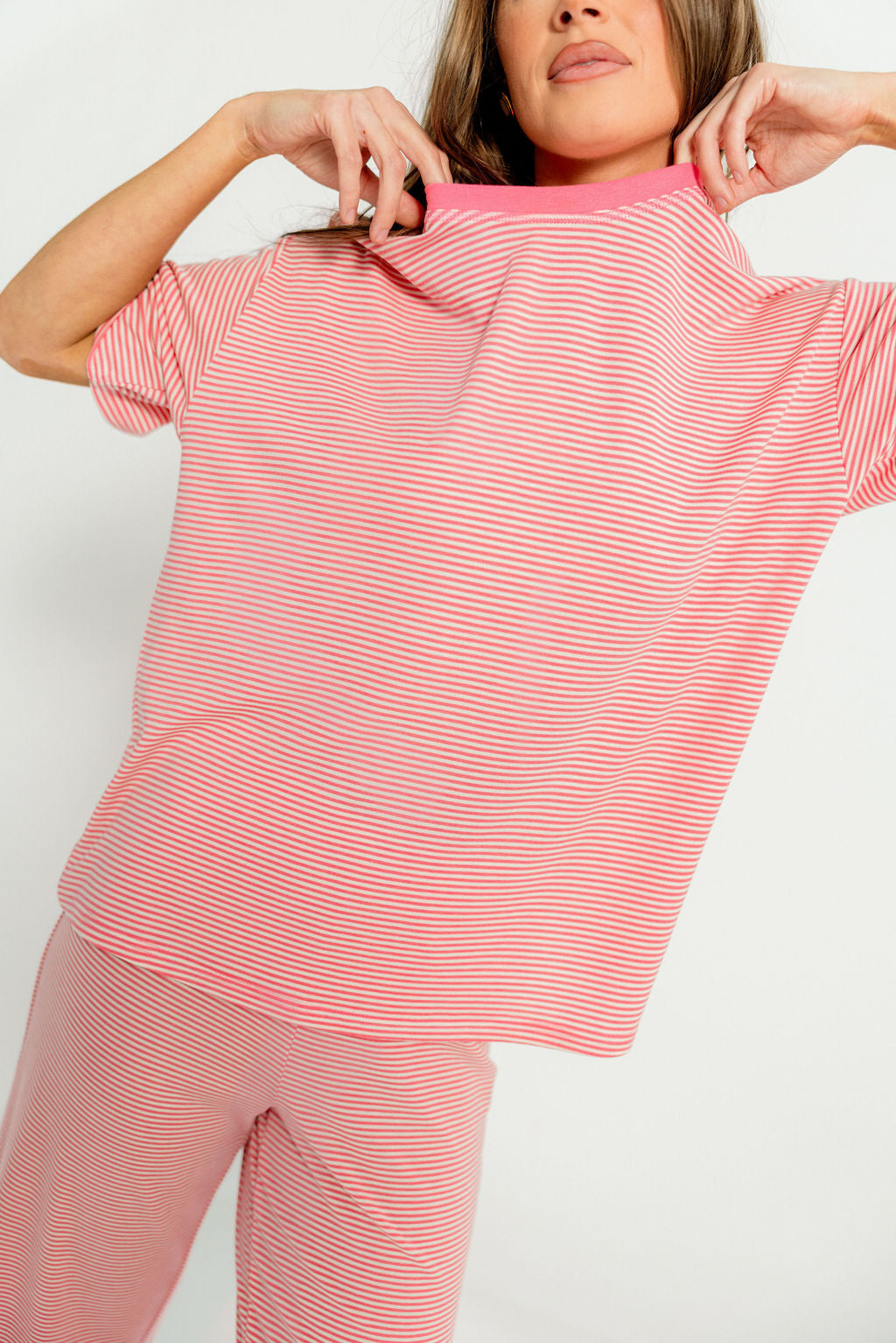 Alana Stripe Set in Bubblegum - Lightweight/Butter Fabric