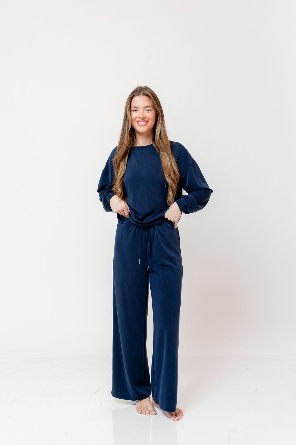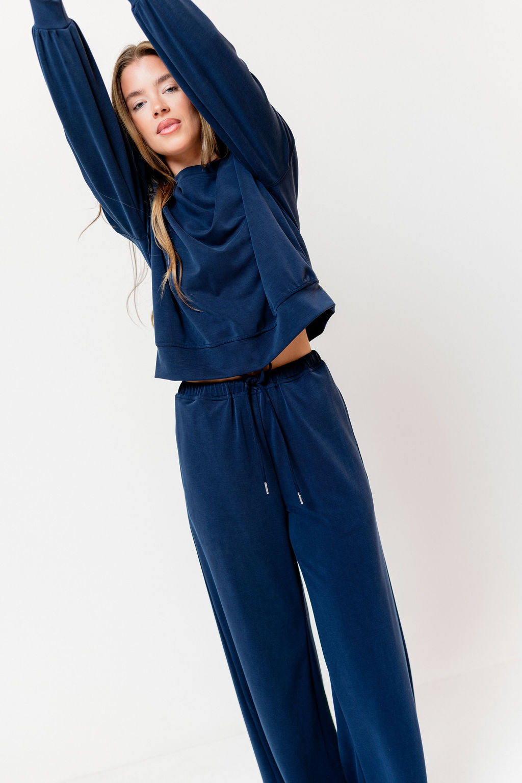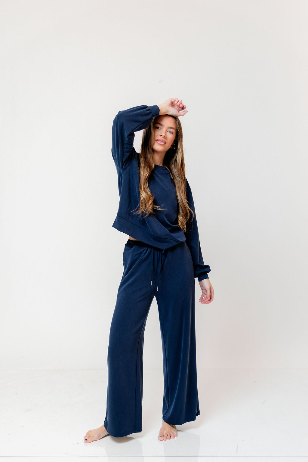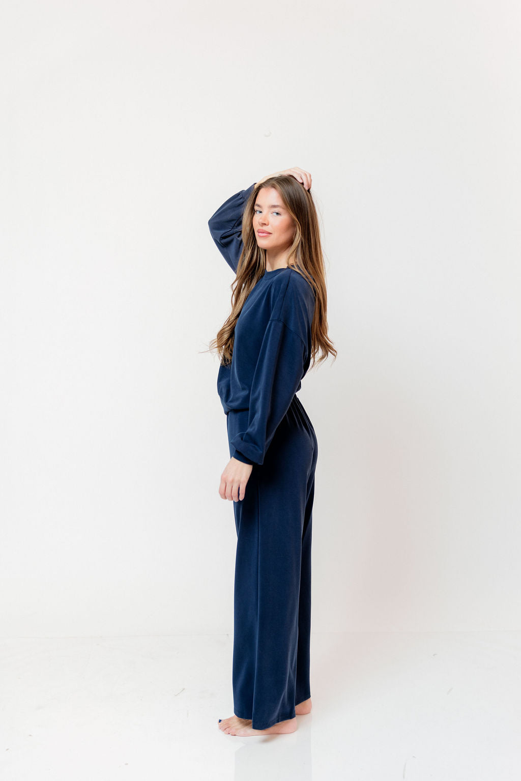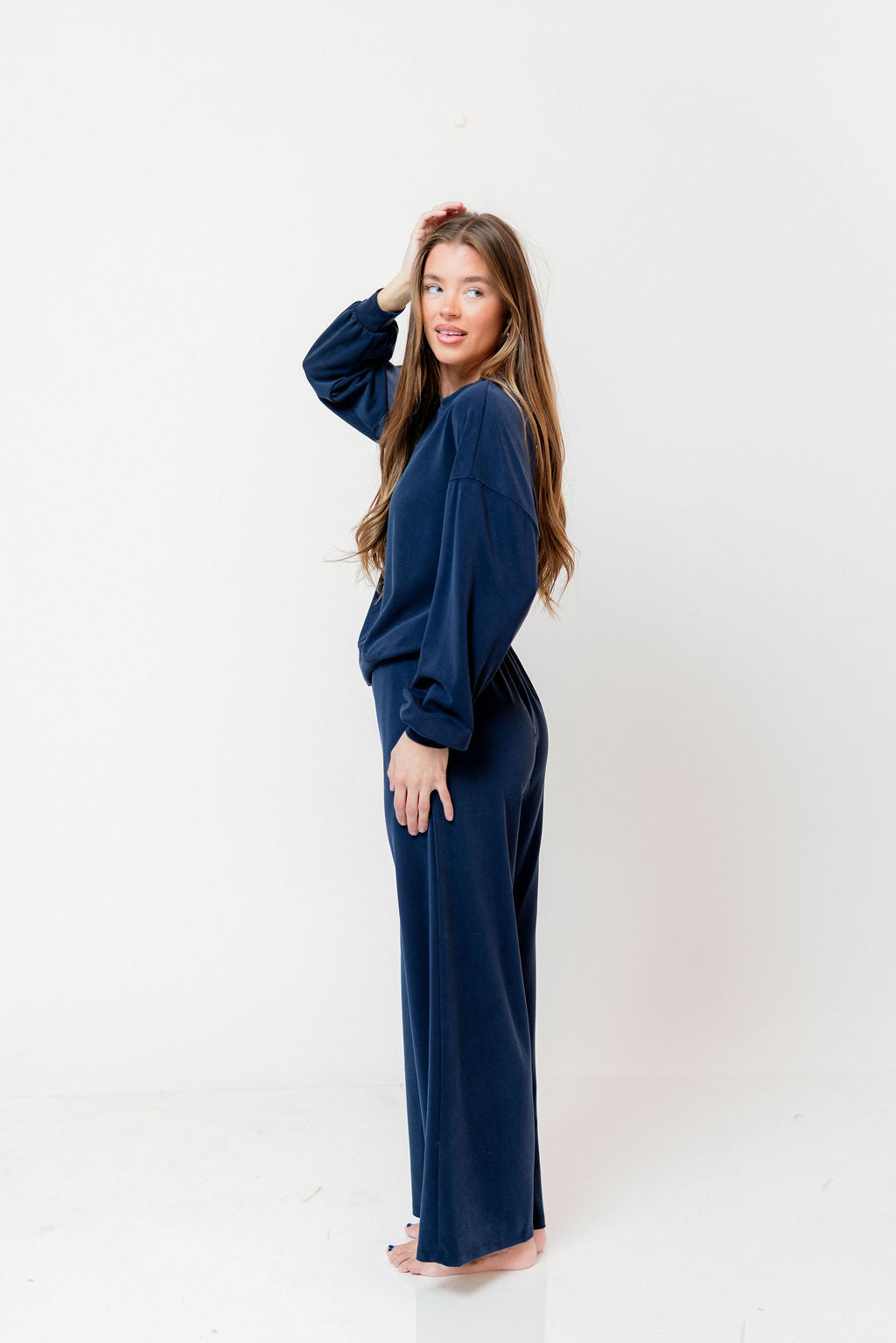 This sleek, ultra-versatile set is premium leisurewear at its finest. Meet the Giovanna Set, a gorgeous navy top duo that's perfect for lounging, travel, or every daywear.