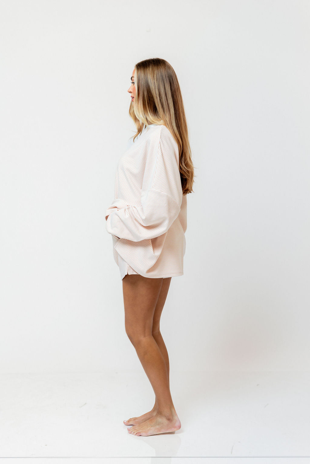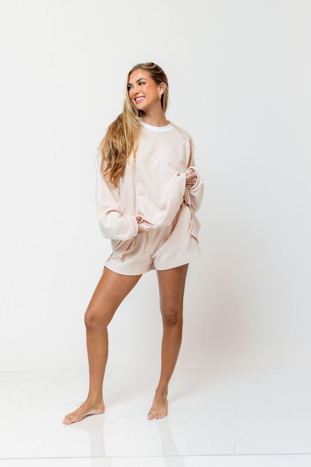 Campbell Striped Fleece Shorts in Blush *2/19 PRE-ORDER*