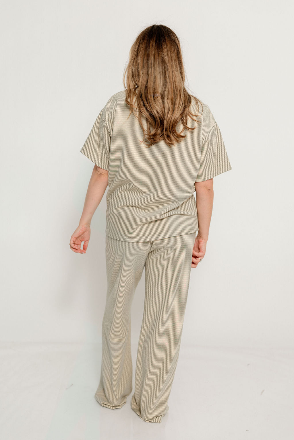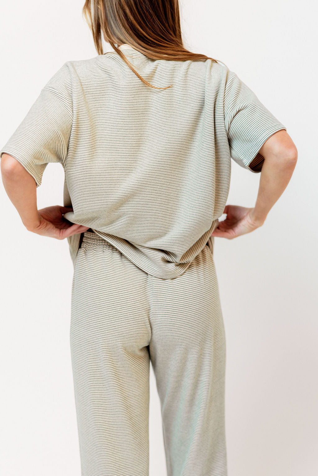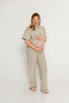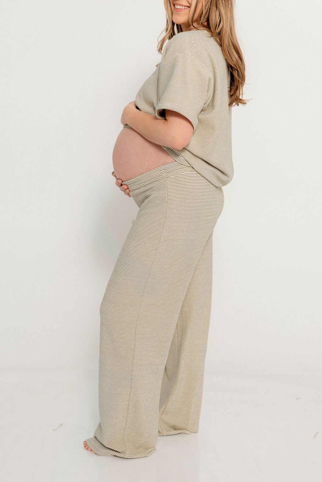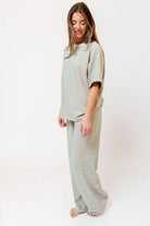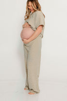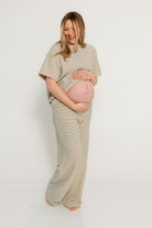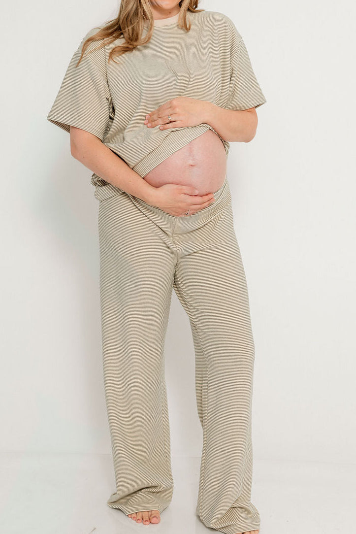 Naomi Striped Oversized Fleece Short Sleeve Top in Cream/Green - Bump Friendly *2/19 PRE-ORDER*